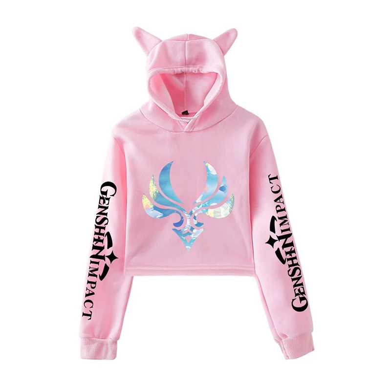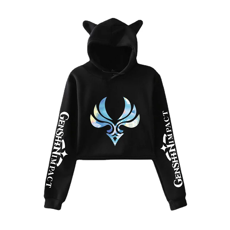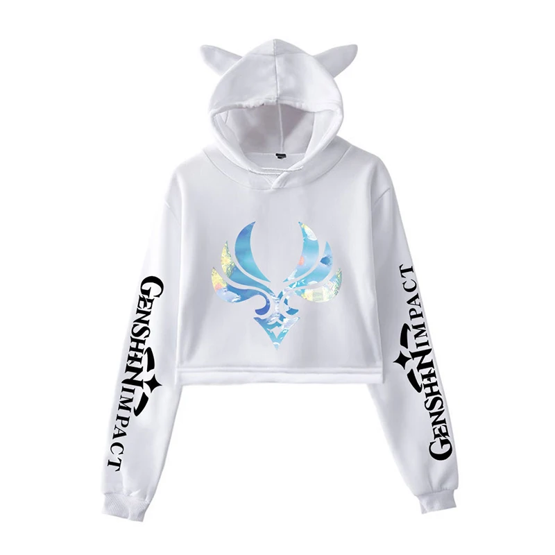 Толстовки Genshin Impact, укороченная толстовка, женская модель Кота, милая спортивная одежда с капюшоном в стиле Харадзюку, Осень-зима, повседневная одежда