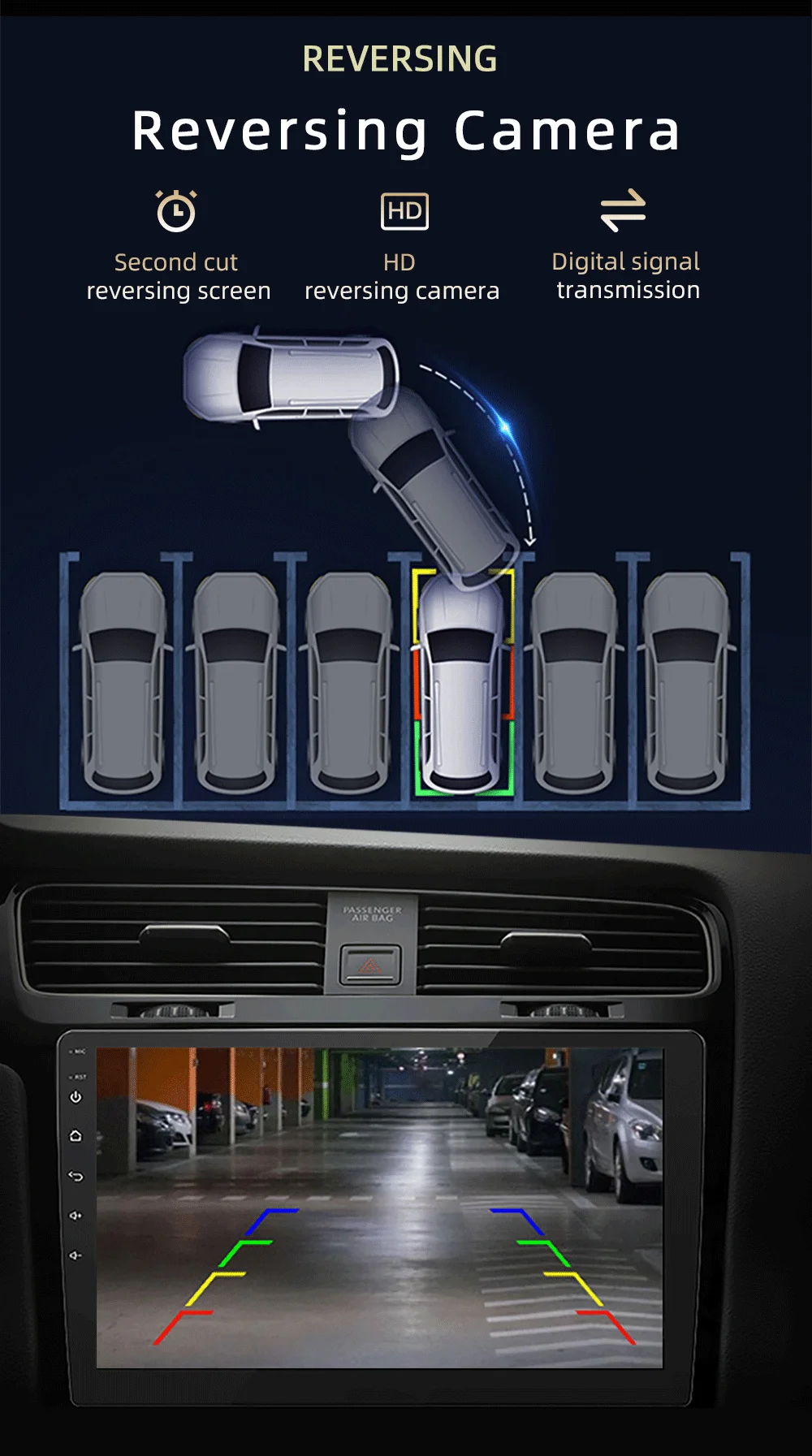 8. Функция заднего хода: Поддержка входа камеры заднего хода, Реверсивный более безопасный и удобный