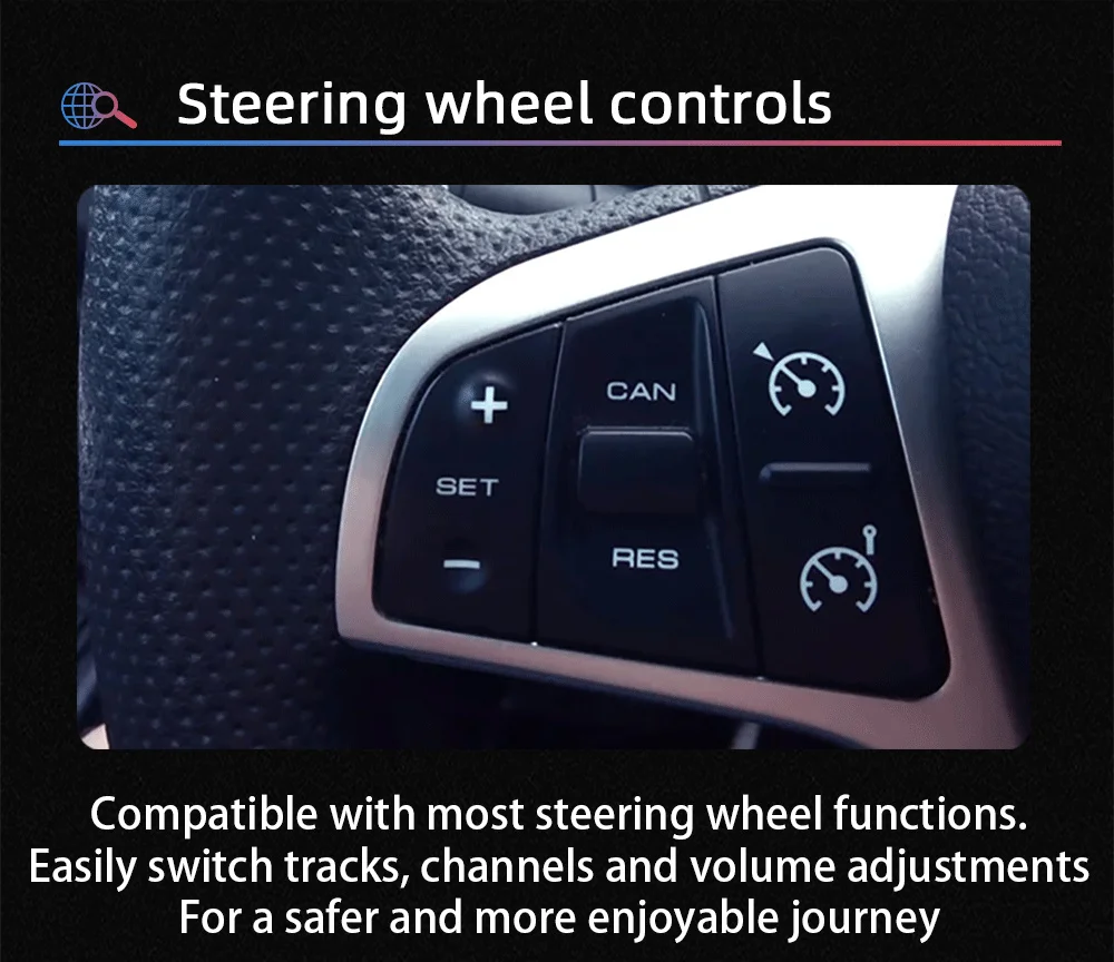 Функция управления рулевым колесом позволяет легко контролировать изменение песен, изменение радиоканалов и регулировка громкости через кнопки на руле. Сделайте ваше путешествие более безопасным и удобным