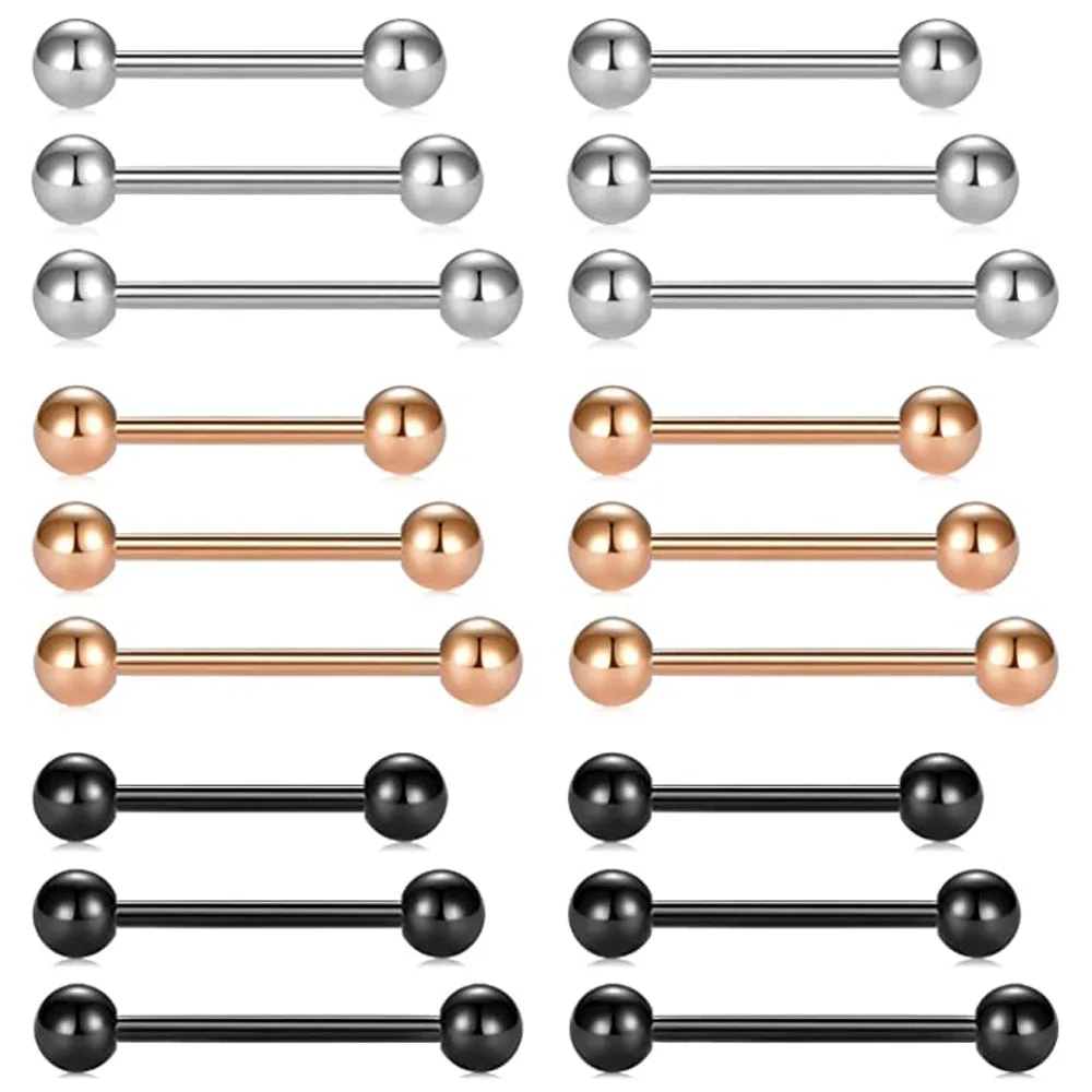 Кольца для пирсинга, прямые пирсинг-штанга для языка стержни из нержавеющей стали, 141618 мм, 16 шт.