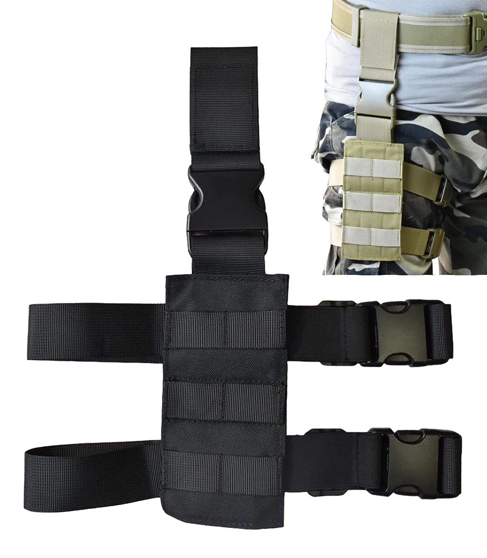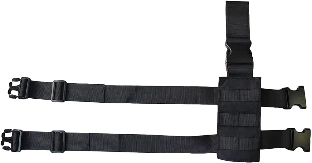Один ремень для соединения ремня, 2 ремня с быстросъемными пряжками, можно носить с ремнем на ноге или прикреплять к талии с помощью ремня (тактический пояс включает в себя), лямки полностью регулируются и снимаются.
