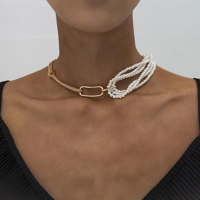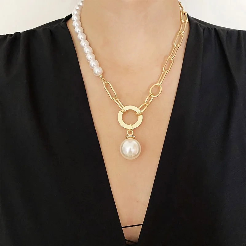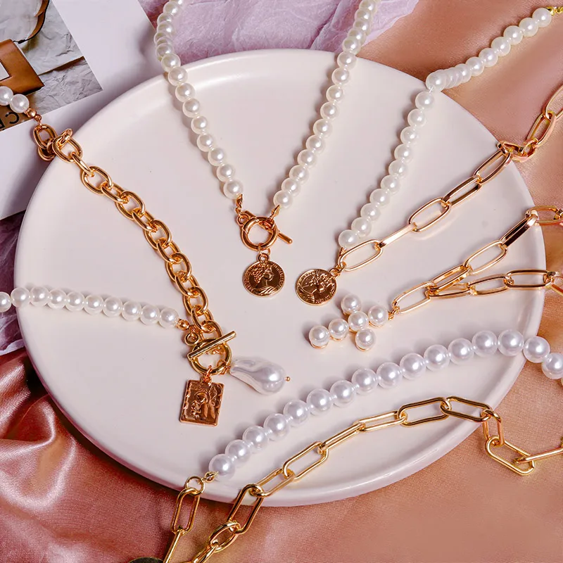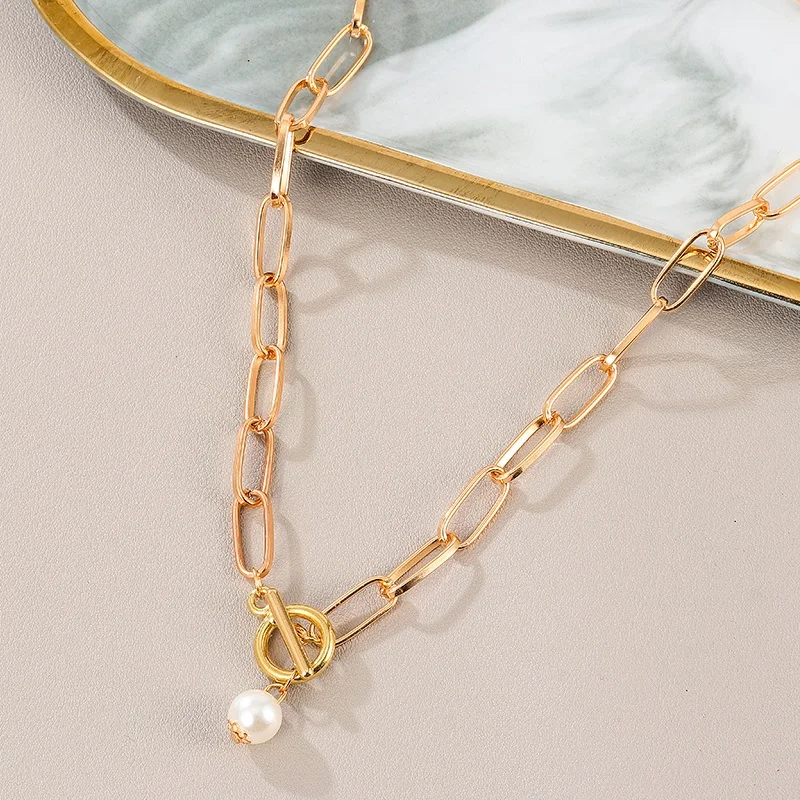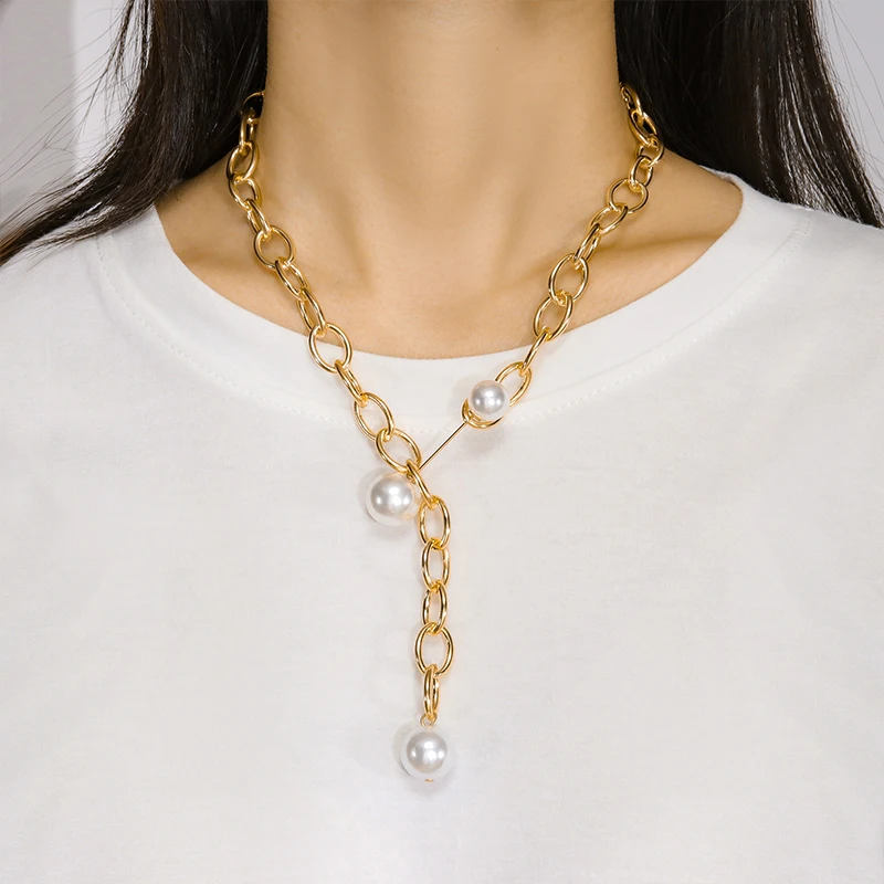 BFH 2021 модное большое винтажное ожерелье для женщин жемчужное поворотное Золотое толстое колье с замком цепочка ожерелье ювелирные изделия для вечеринок оптовая продажа
