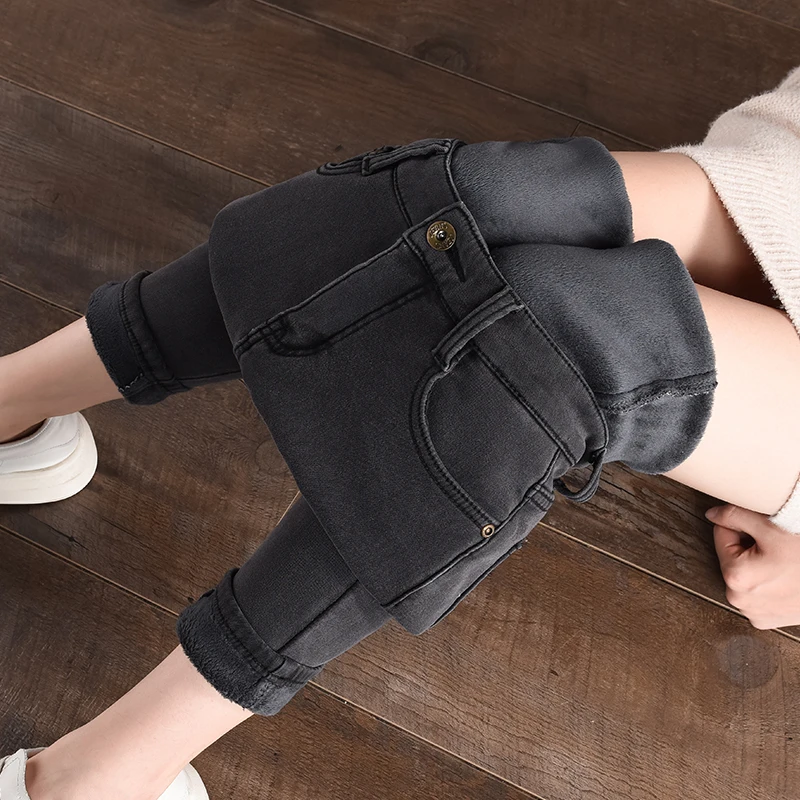 Классические женские джинсы с флисовой подкладкой, зимние Бархатные Теплые плотные повседневные джинсовые брюки для мам, брендовая одежда высокого качества 26-40