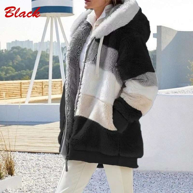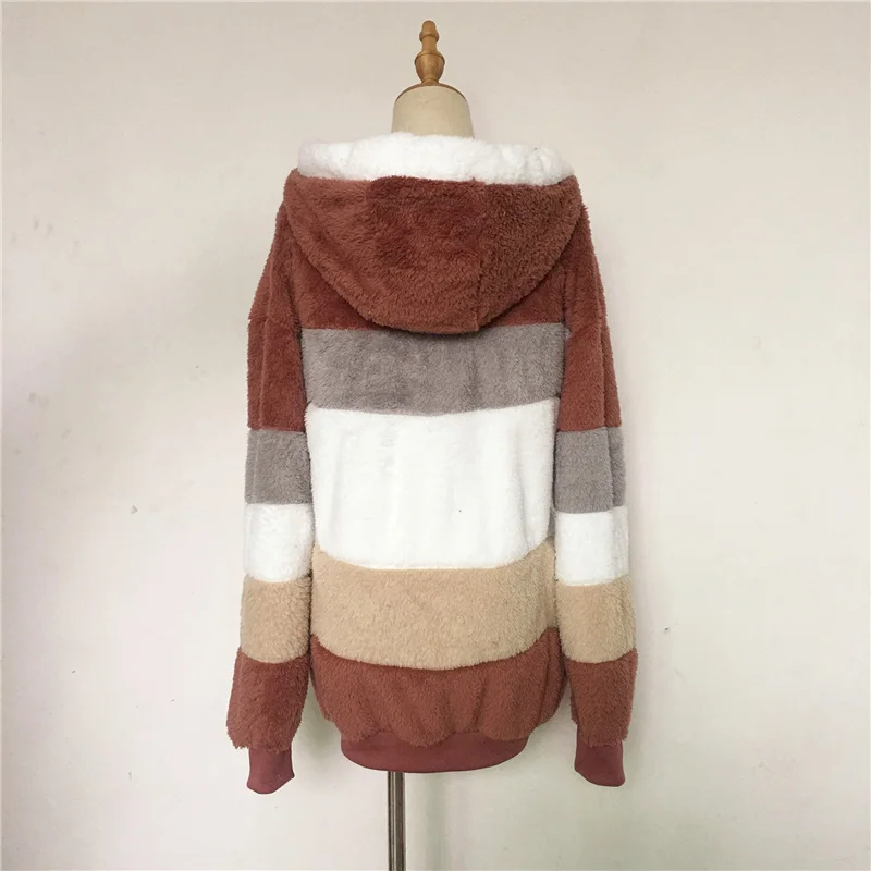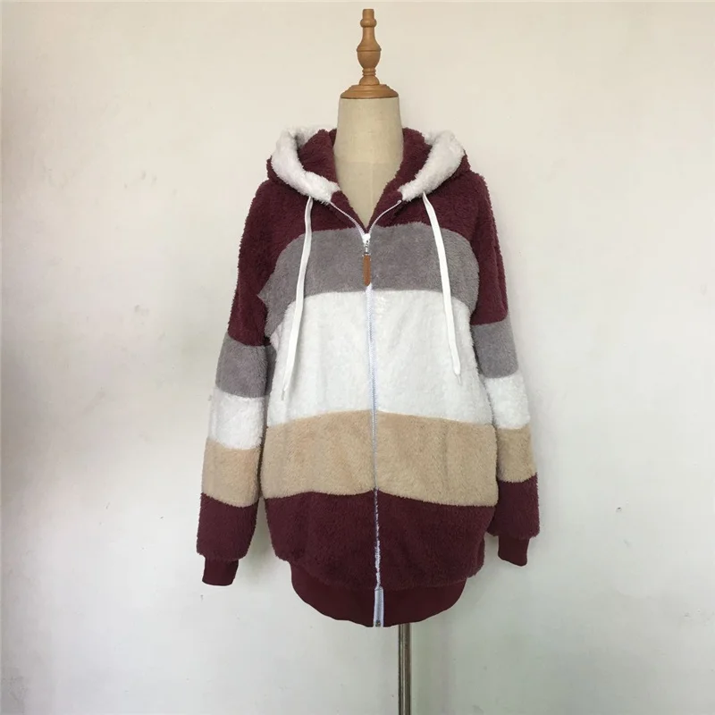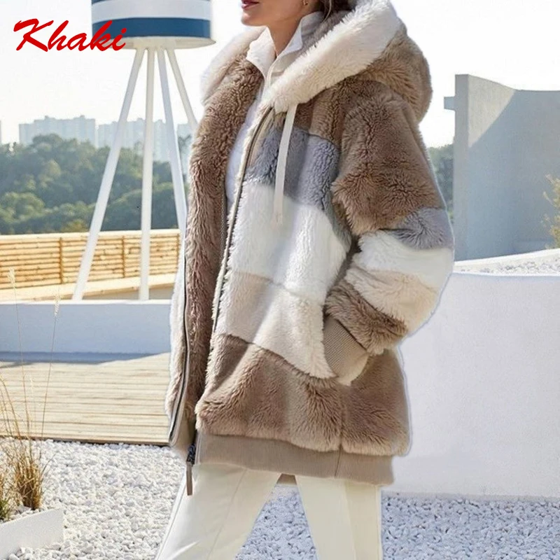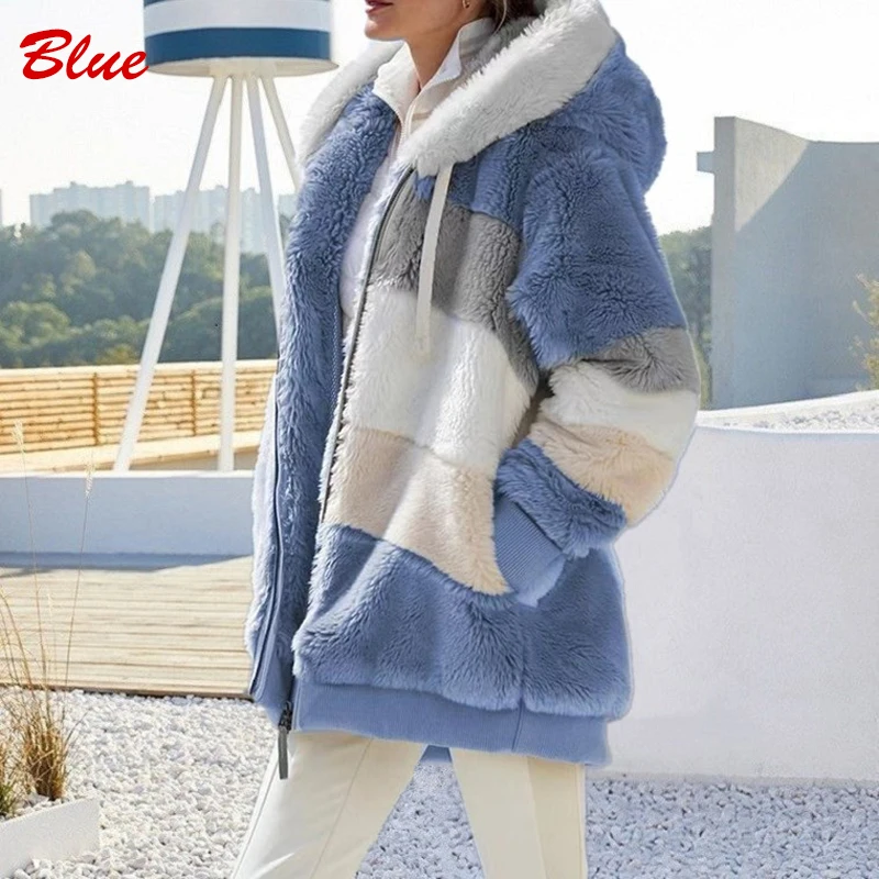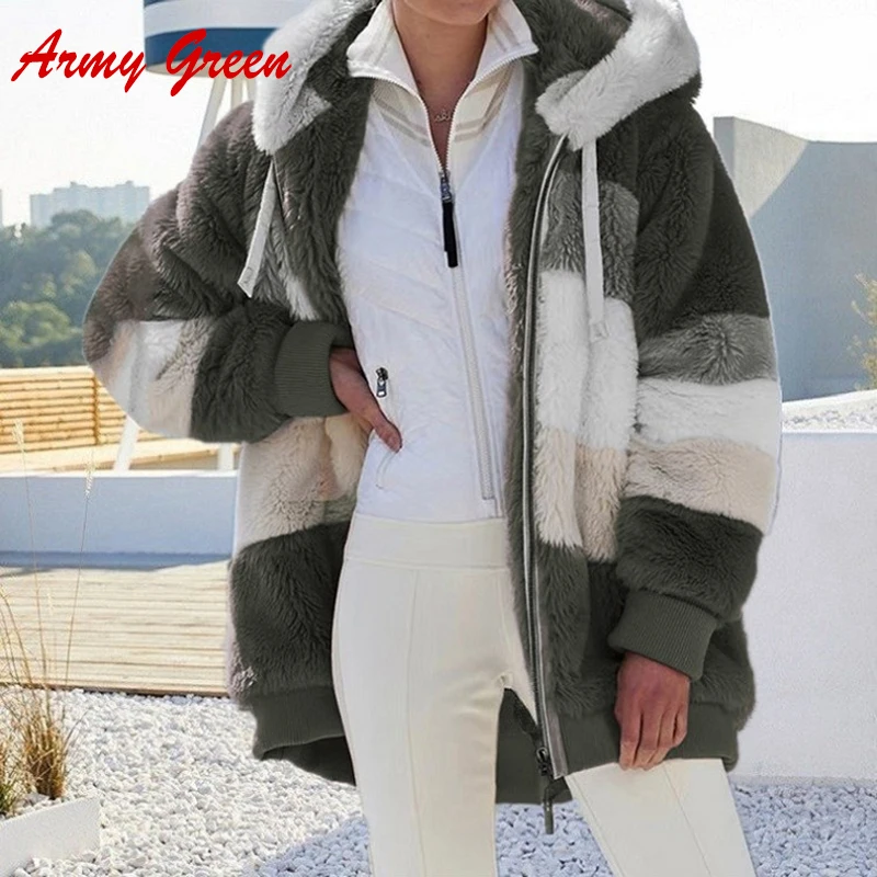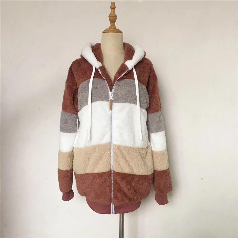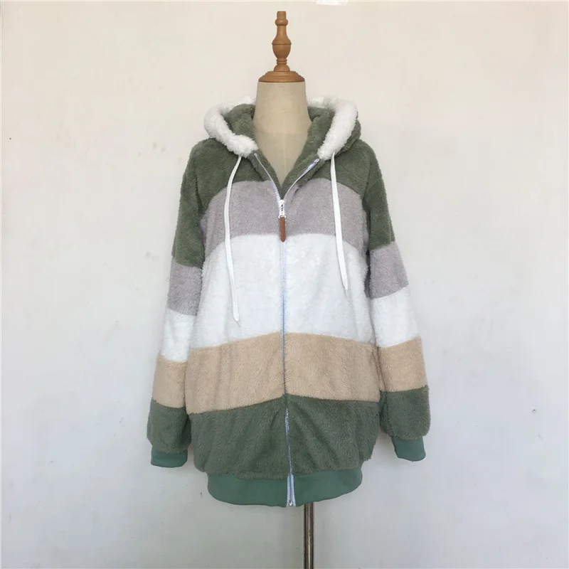 Женская плюшевая куртка на молнии, с капюшоном, на флисе