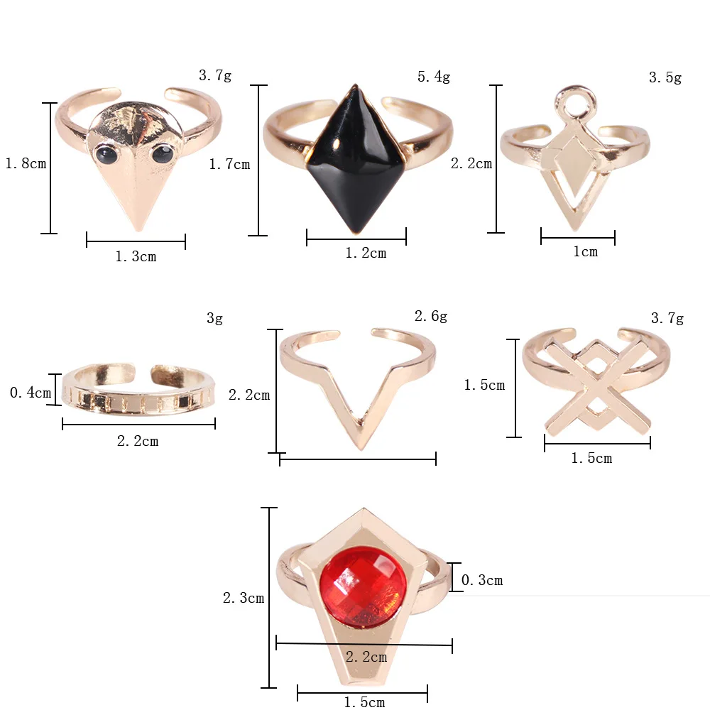 Кольца регулируемые ударные Ху Тао Cos, комплект из 7 колец с девятью колоннами секретного покачивания, подарок в черной подарочной коробке