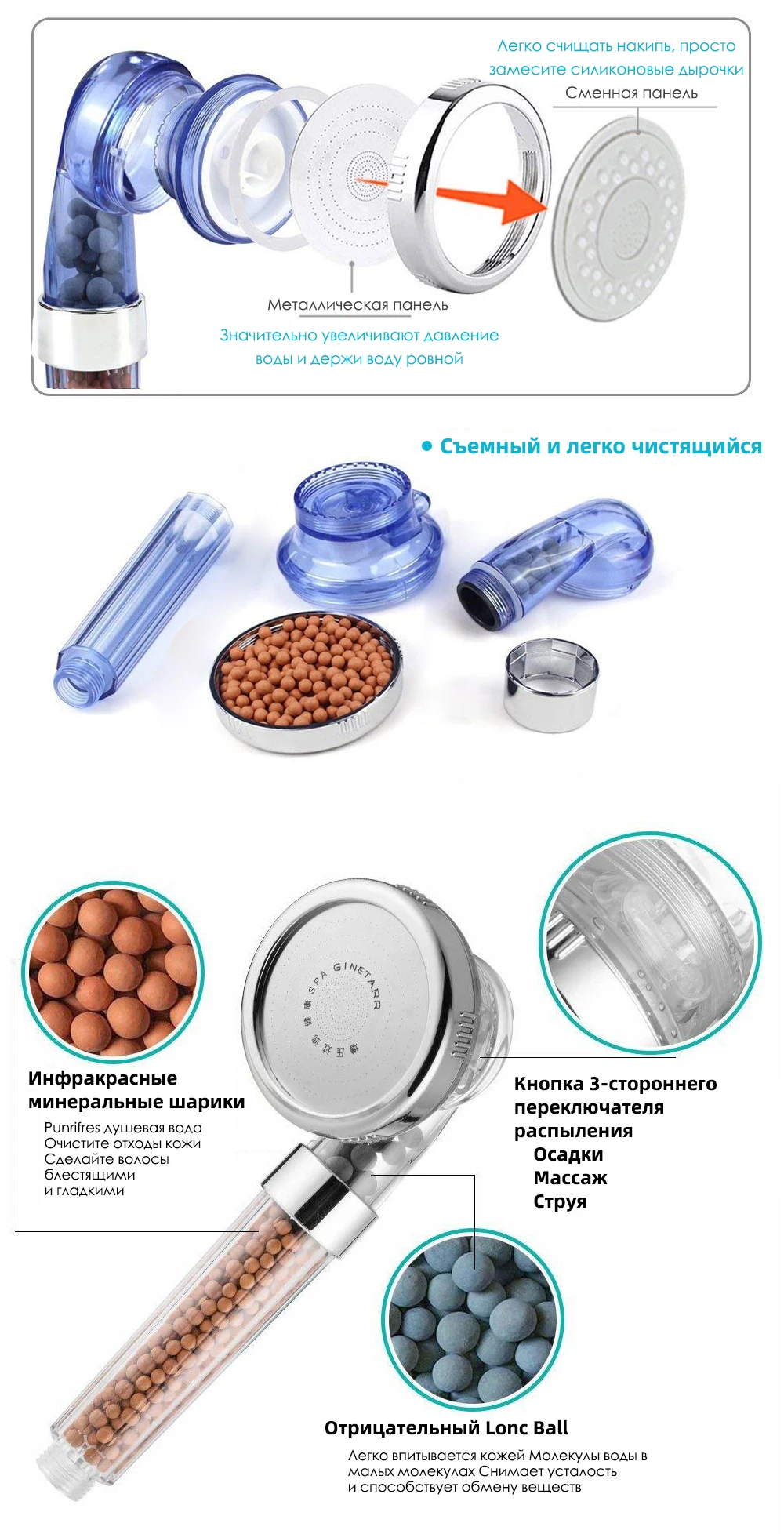 ZhangJi 3 режима душ для ванной Регулируемый струйный душ насадка д...