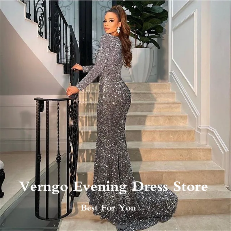 Женское вечернее платье-Русалка Verngo, блестящее серое платье с длинными рукавами, скромное, на выпускной