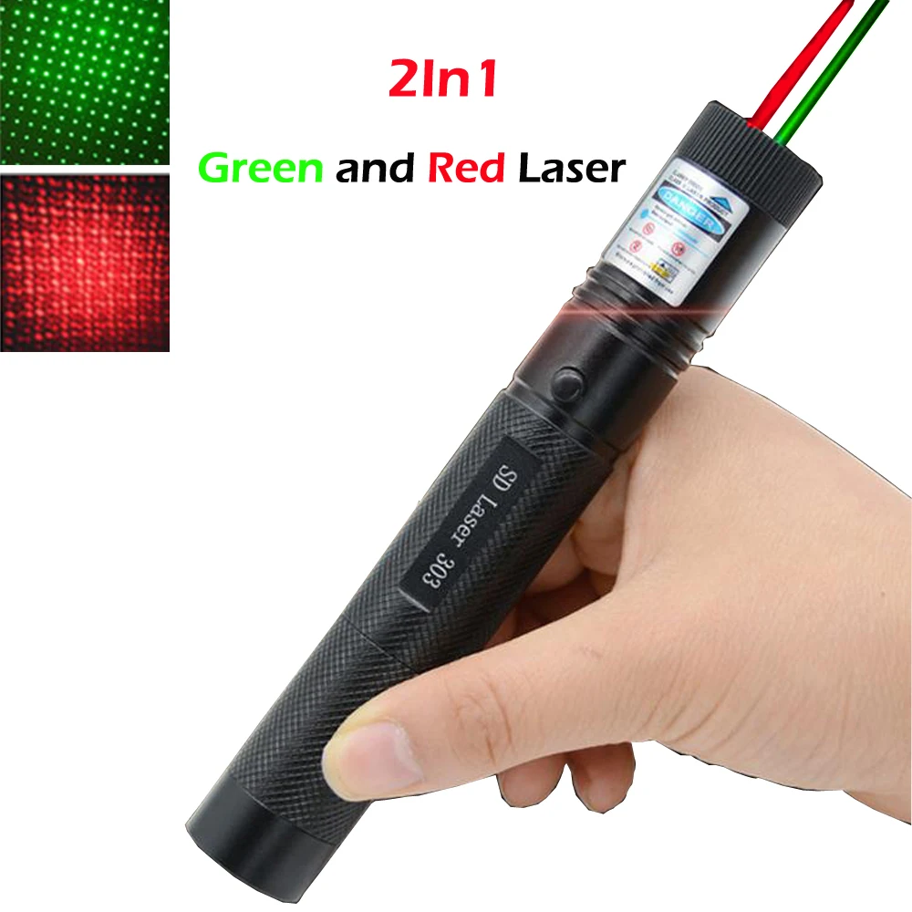 Высокомощные гибридные красные и зеленые лазерные указки 2 в 1 с регулируемым фокусом, 5 мВт, 532 нм, мощный лазерный прицел, спичка для сжигания