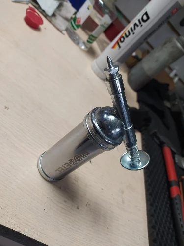 Пришел с запаянным наконечником, через который выходит смазка. Хорошо что есть сверла. Работает нормально, свою функцию выполняет с полна.