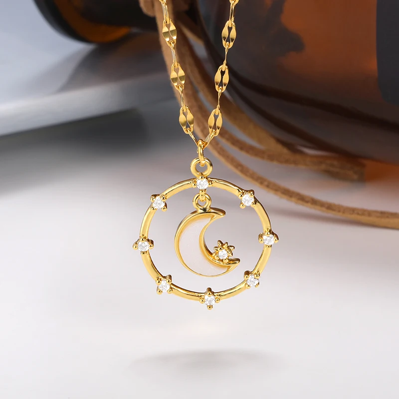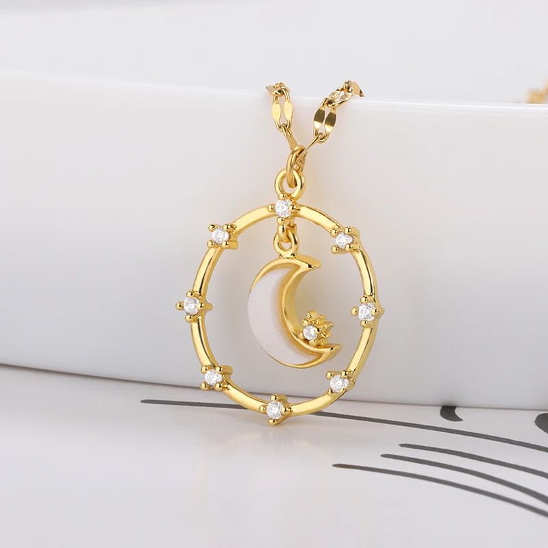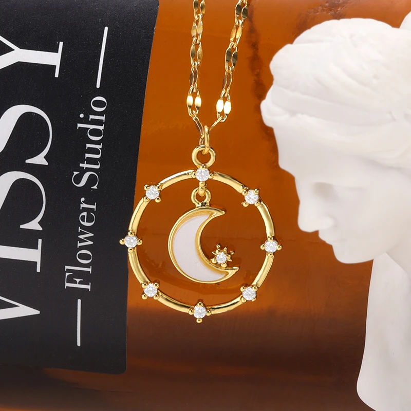 Модные ожерелья со звездой, полумесяцем, Луной и камнями из циркония для женского дня рождения, рождественский подарок, ювелирные изделия для вечеринки и свадьбы