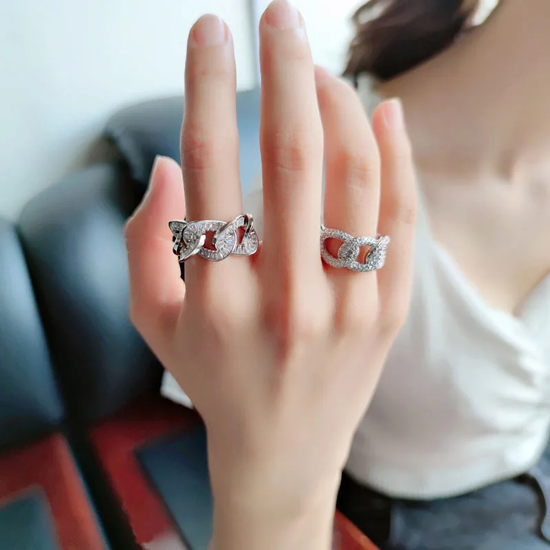 Женское Винтажное кольцо с цепочкой ANENJERY, сверкающее роскошное украшение для вечеринки