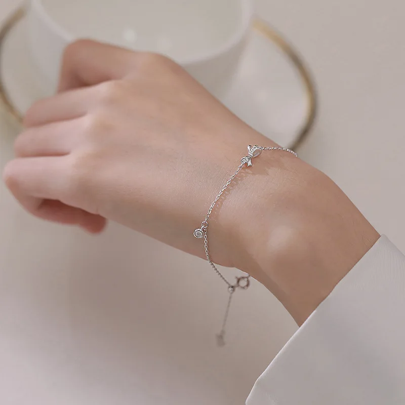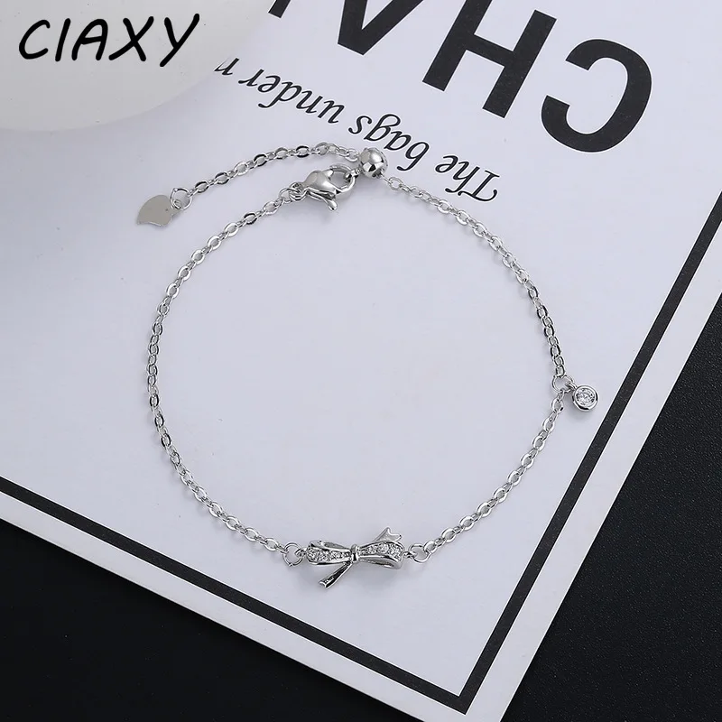Женские браслеты CIAXY с бантом, 925 простого дизайна, с микроинкрустацией из циркона, регулируемый браслет, роскошный серебристый цвет, ювелирные изделия в подарок