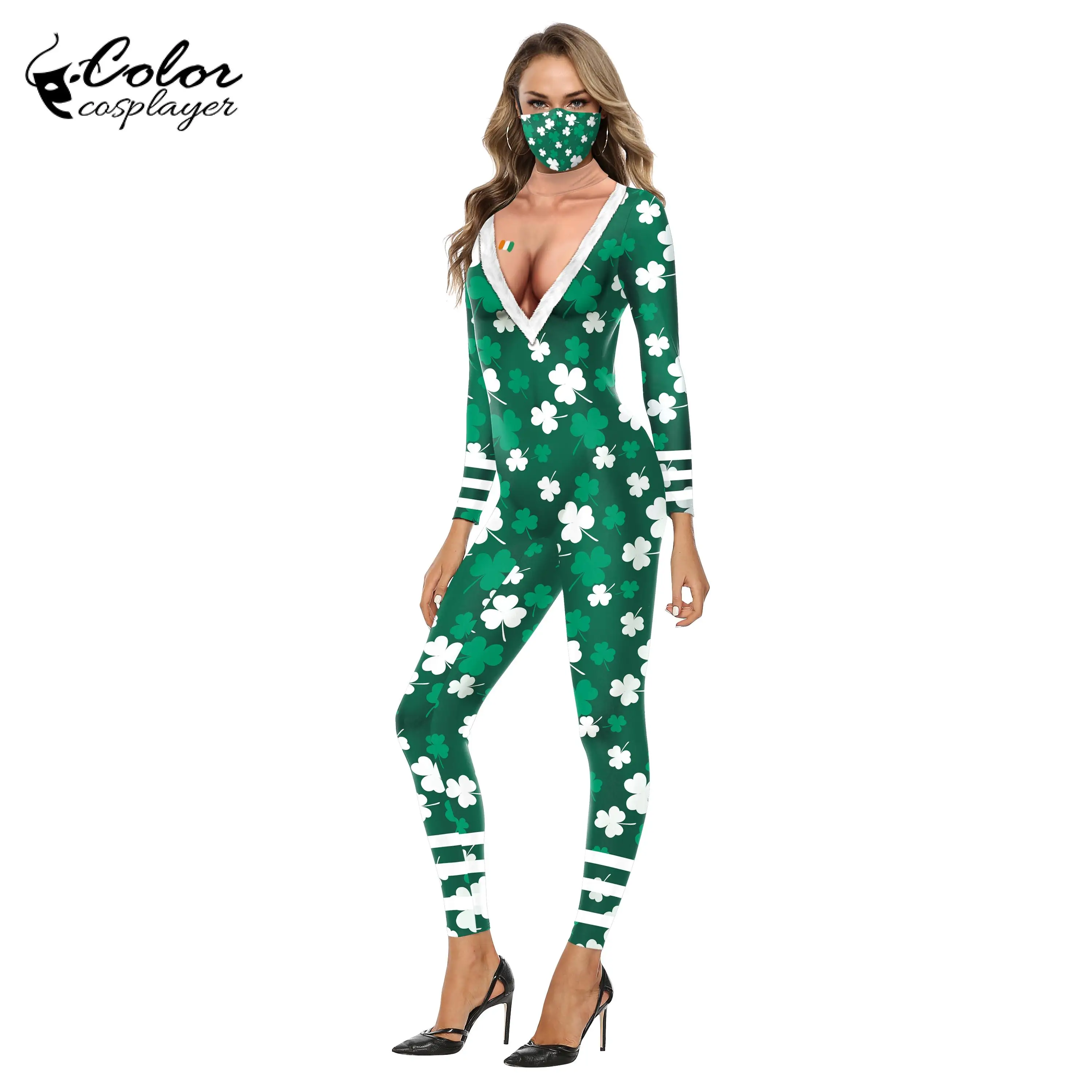 Модный карнавальный необычный костюм кошки зентай, костюм для косплея, Рождественский женский сексуальный костюм с зеленым узором, маска, боди