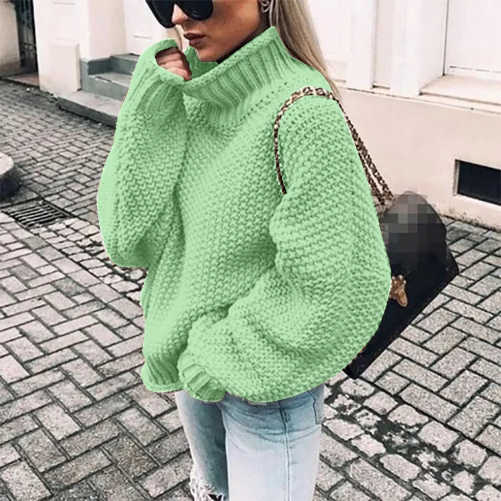 Женский Трикотажный Свитер оверсайз, с высоким воротником