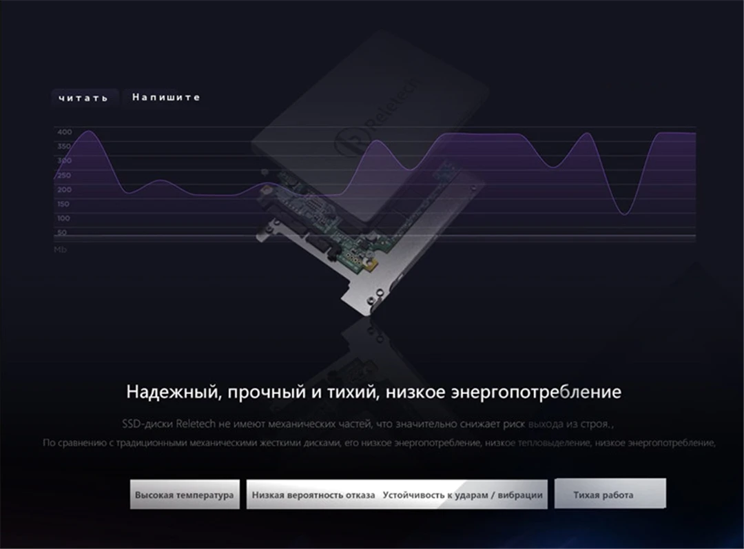 Скорость чтения до: 550 МБ/с.Скорость записи до: 500 МБ/с.