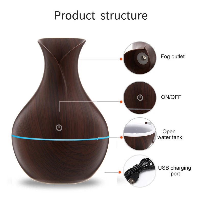 Увлажнитель воздуха с деревянной поверхностью, USB, 7 цветов