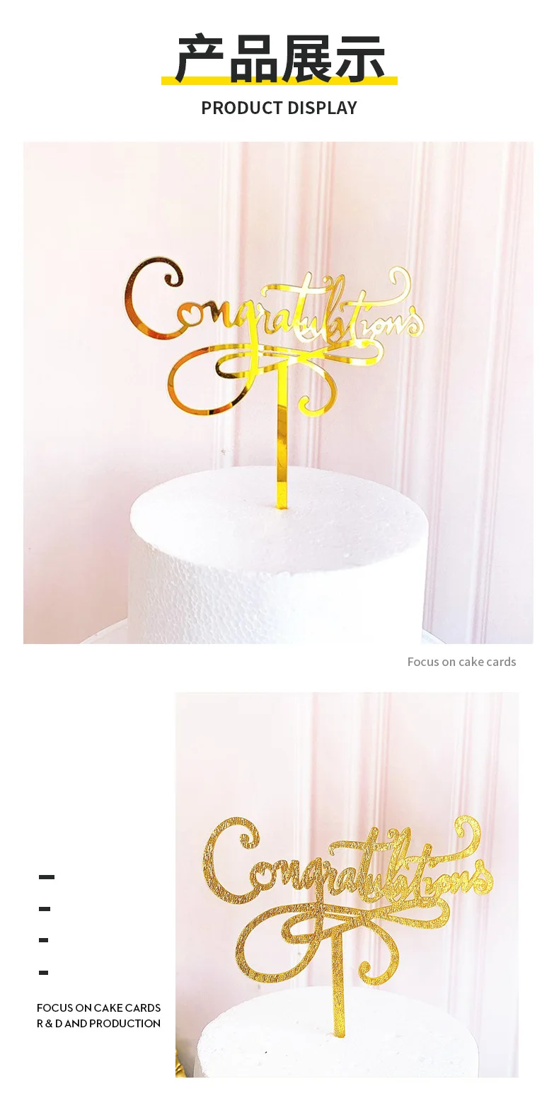 Новый дизайн, акриловые изделия из розового золота Топпер для торта...