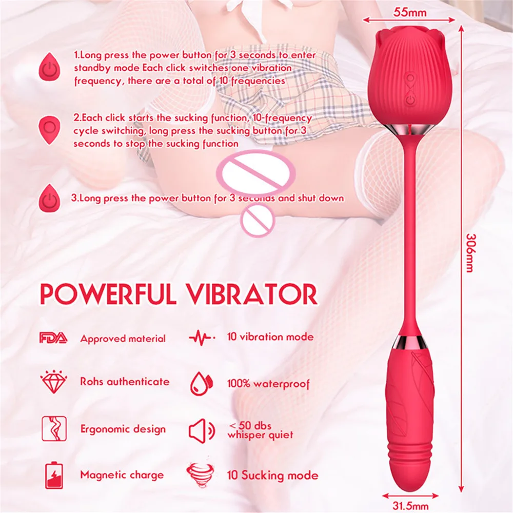 Характеристика:Тип: вибратор с двойной головкой для мастурбации женщин, вибратор для сосания, вибратор с розой,Размер корпуса: 306*55*31,5 ммМаксимальный шум: 45 дБЗарядка: USB Магнитная ЗарядкаЧастота: 10 скоростейМатериал: силикон + АБСВодонепроницаемый: IPX6 ВодонепроницаемыйЦвет: розовый, красныйПосылка включает: 1 * Вибратор + 1 usb кабель