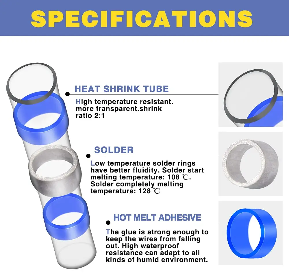 500 шт.5 цветов, термоусадочные стыковые соединители для припоя