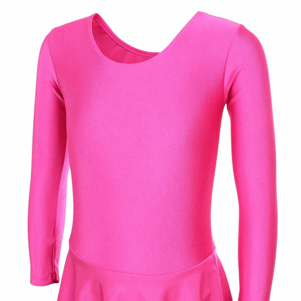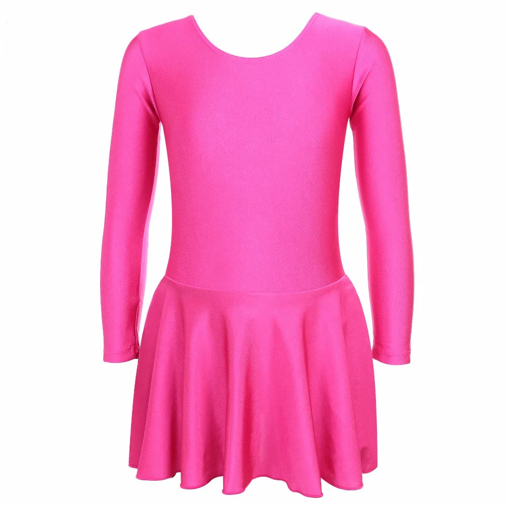 Женское балетное трико с юбкой, длинным рукавом и круглым вырезом