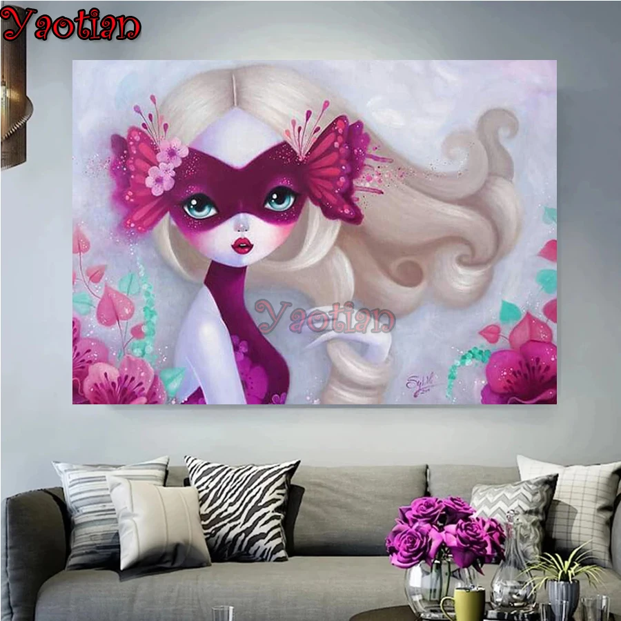 5D Diy Алмазная картина мультяшная девушка бабочка маска Алмазная мозаика картинки Вышивка крестом аппликация Алмазная вышивка головоломка искусство