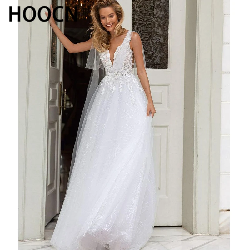 Свадебное платье в стиле бохо HERBURNL, Пляжное Платье с v-образным вырезом и аппликацией... US $720,00