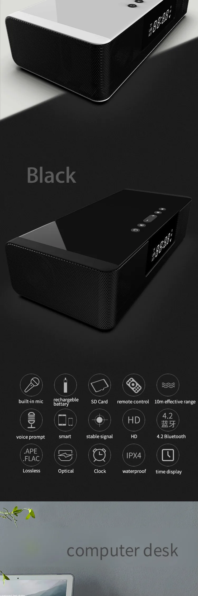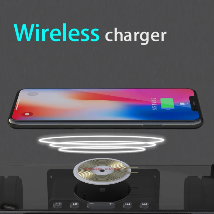 Канал: 2,0 1. Версия BT: V5.0 2. Динамик: 5 Вт * 2 3. Расстояние BT: 10 м 4. Батарея Емкость: 4000mA 3,7 V 5. Номинальное напряжение: 5 В постоянного тока 6. Время воспроизведения музыки: около 7 часов. 7. Время работы в режиме ожидания: 120 часов. 8. 1 а Время зарядки: около 5 часов. 9. Аудио вход: BT, USB, 3,5 мм Aux, tf-карта, RCA, оптический 10. Размер: 248x102x57 мм/9,76 дюйма x 4,02 дюйма x 2,24 дюйма 11. Вес нетто: 680 г 12. Встроенный микрофон для громкой связи 13. Время разговора: около 6 ч 13. Беспроводная зарядка QI: обеспечивает 3000 мАч для телефона 14. Воспроизведение музыки + Беспроводная зарядка QI: 1500 мАч для телефона и 2 часа воспроизведения 15. В комплект входят: кабель для зарядки, 3,5 мм-RCA кабель, 3,5 мм аудио кабель, волоконно-оптический кабель, дистанционный пульт, инструкция Поддержка ТВ/ПК/телефона/планшета/ноутбука/MP3/MP4/DVD плеера/TV Box аудио