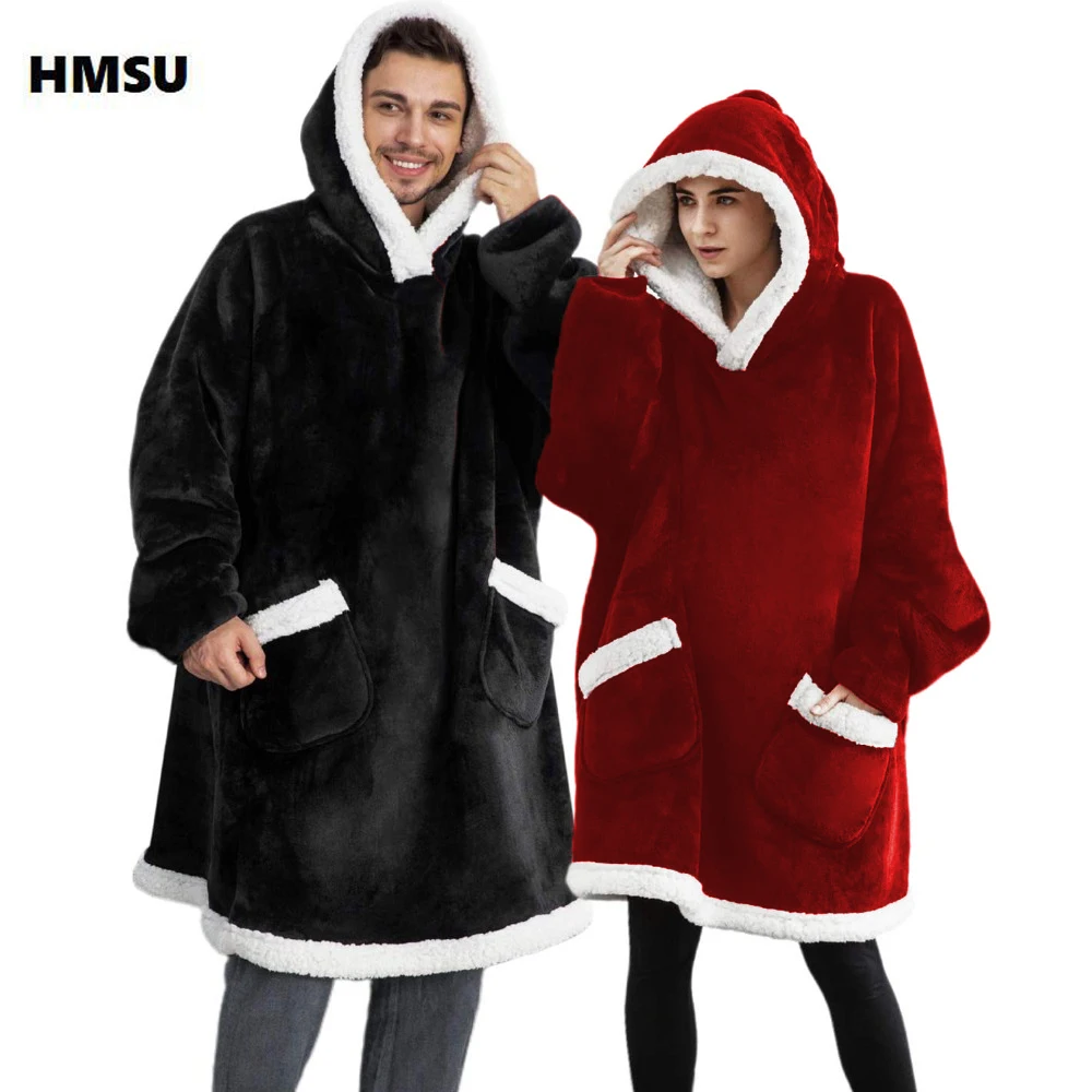 Утяжеленное Флисовое одеяло HMSU, теплый толстый свитер с капюшоном для телевизора, унисекс, гигантский карман, для взрослых и детей, для кровати, путешествий, дома