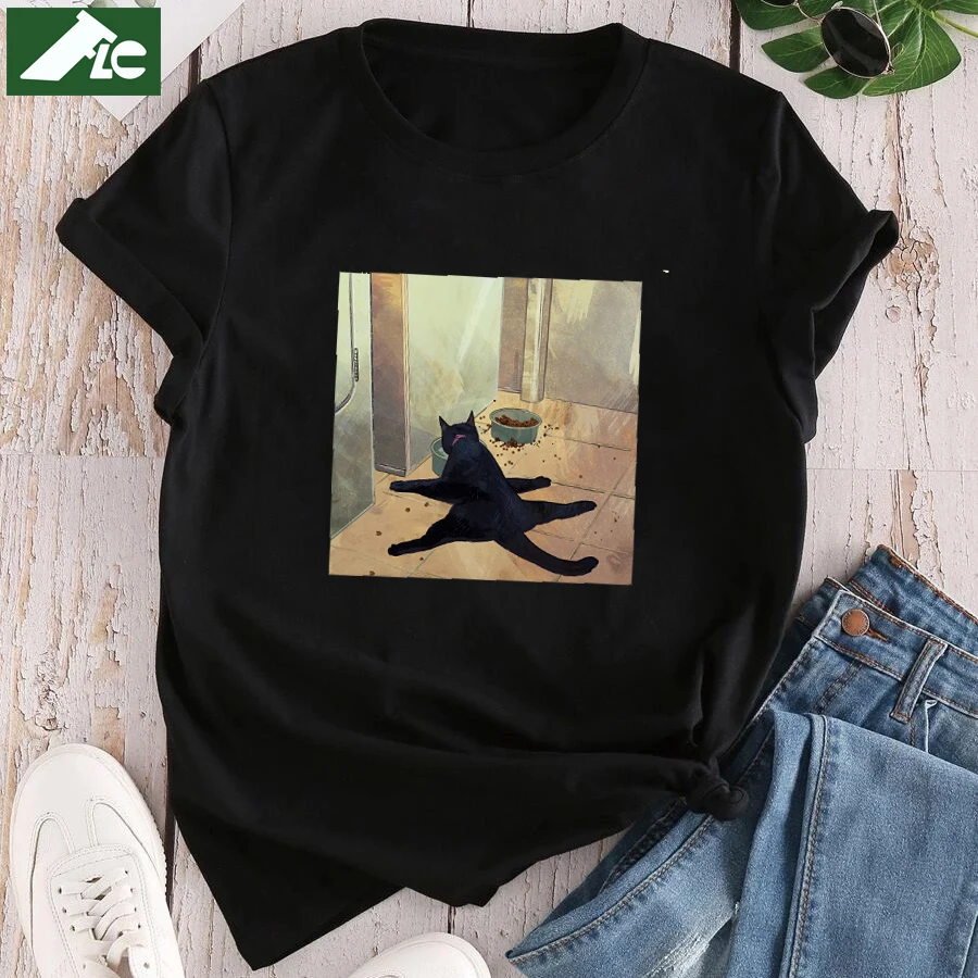 Забавные женские рубашки с графическим изображением черной кошки Le...
