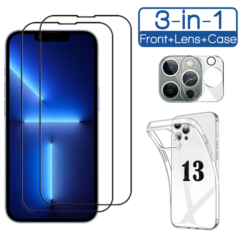 Прозрачный чехол 3 в 1, защита для экрана и объектива для iPhone 13...