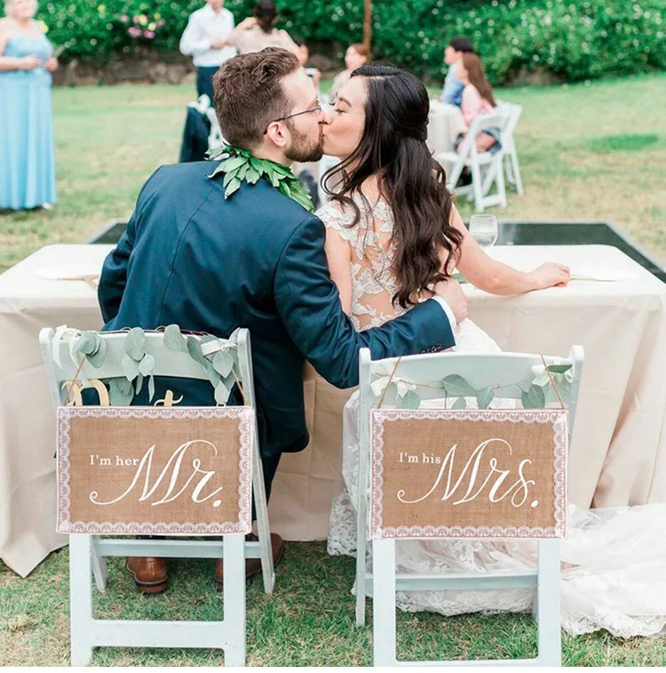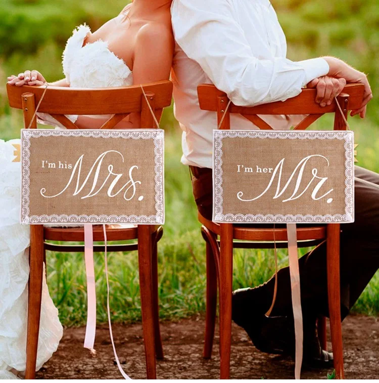 Mr Mrs стул с джутовым баннером баннер винтажная деревенская Свадьб...