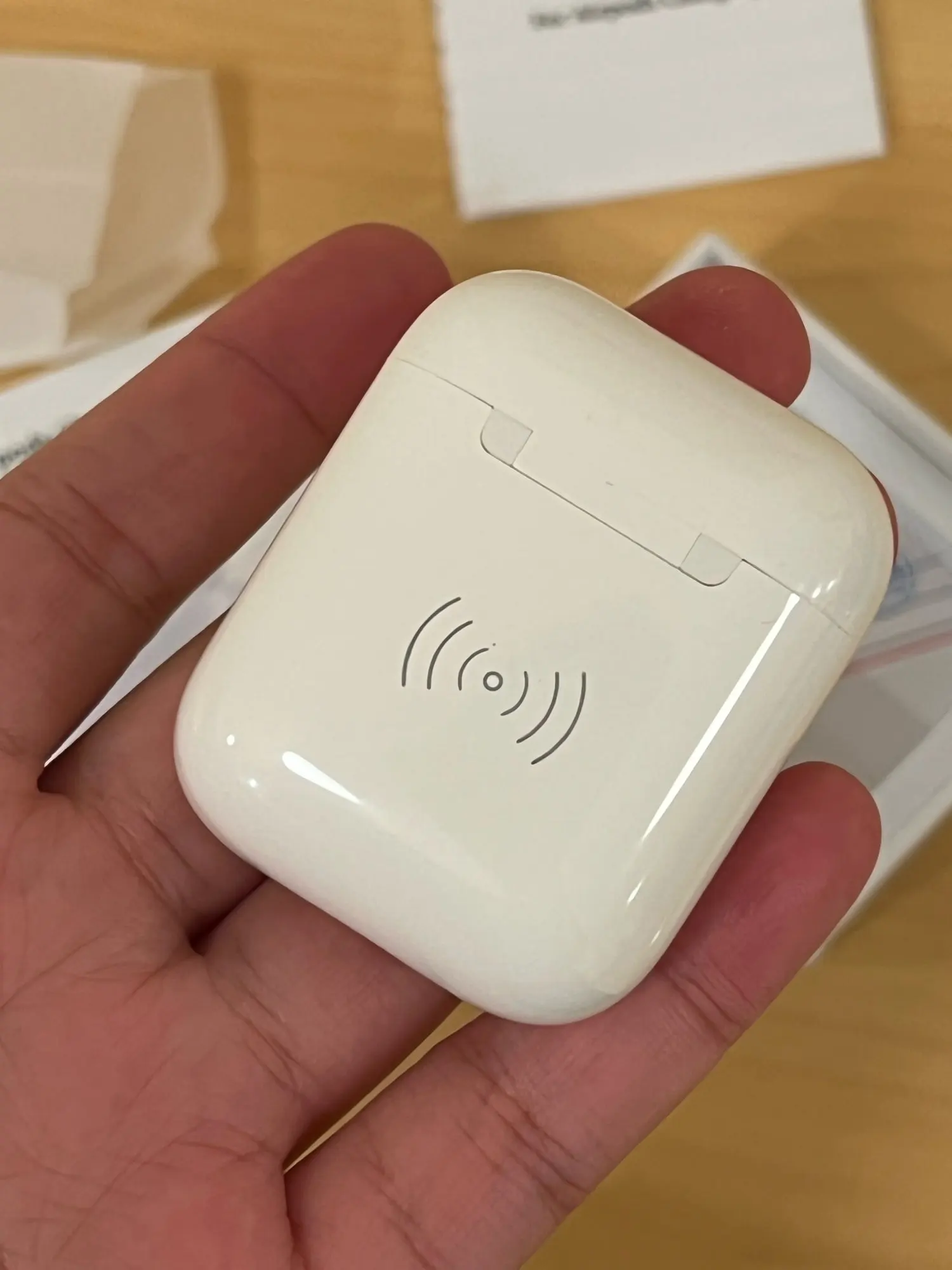 Быстро дошел. Для Air pods 2 подошел идеально. Наушники заряжает, кейс телефон находи и принимает за родной. Если вы потеряли свой кейс это лучшее что можно найти. ПС пластик на ощупь отличается от оригинала но это несущественно