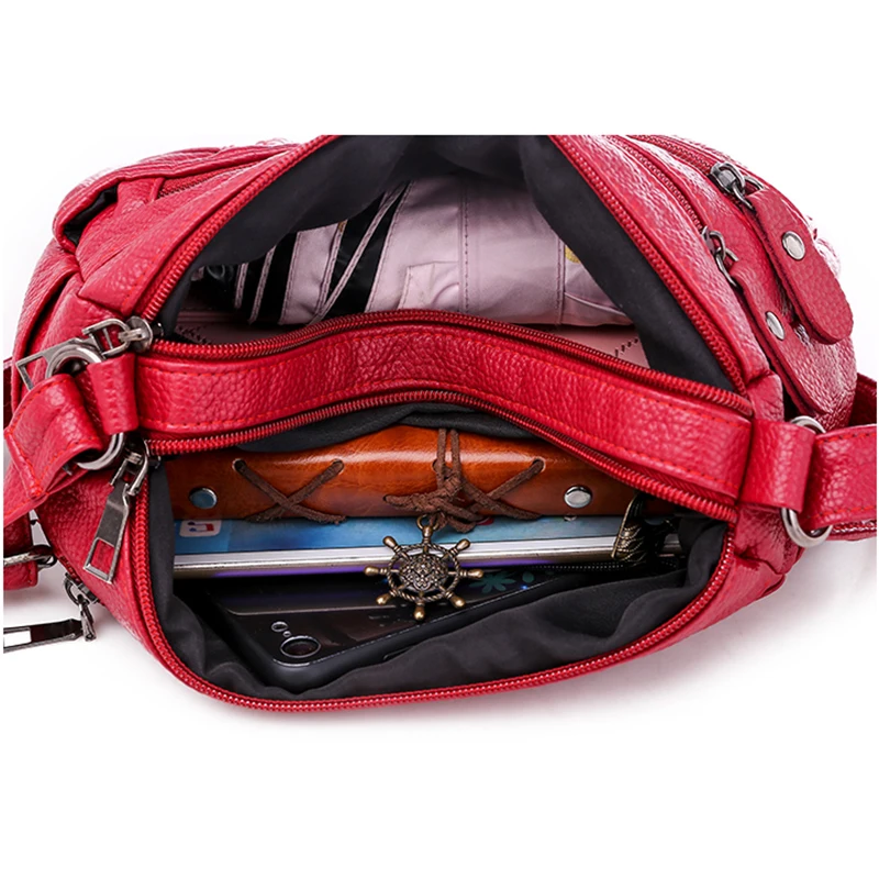 Сумка через плечо из мытой кожи для женщин, сумочка-мессенджер из искусственной кожи в винтажном стиле для мам, саквояж кросс-боди для покупок, сумка для мобильного телефона