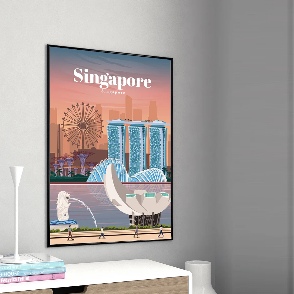 Постер с изображением города и туристического пейзажа, скандинавский Настенный декор для гостиной и офиса в стиле Кэр, Мельбурн, Сингапур, Мексика, Агра