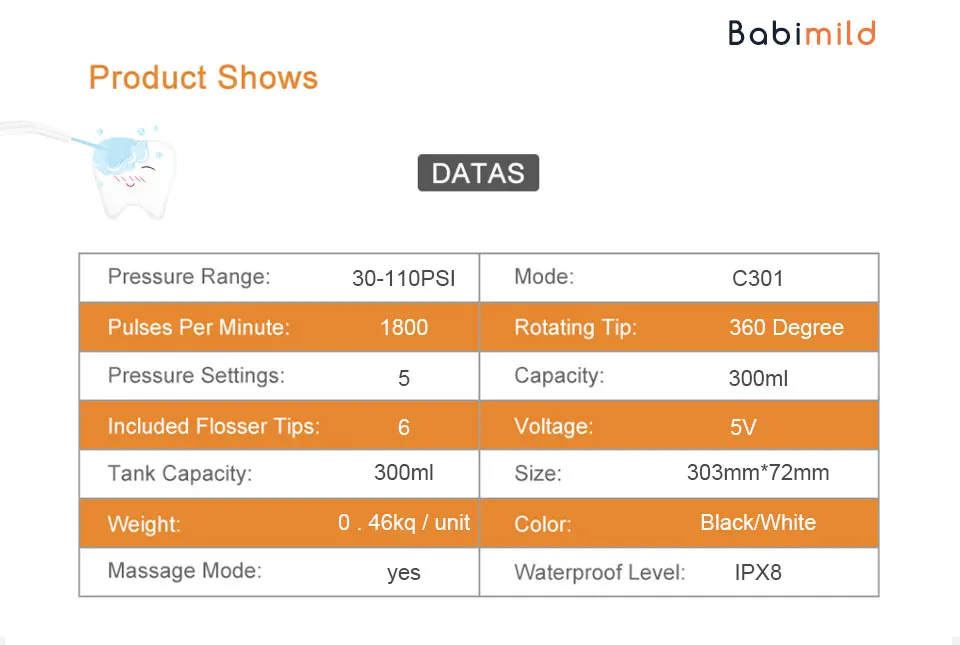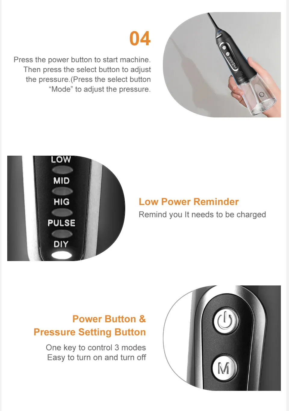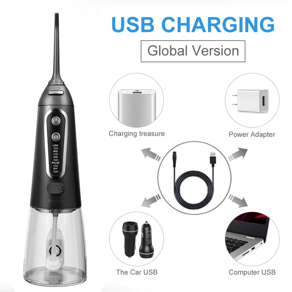 AUSDA Ирригатор для полости рта USB ирригатор для зубов 300 мл Водонепроницаемый ирригатор для воды Flosser Зубная нить Отбеливание зубов очиститель 6 насадок