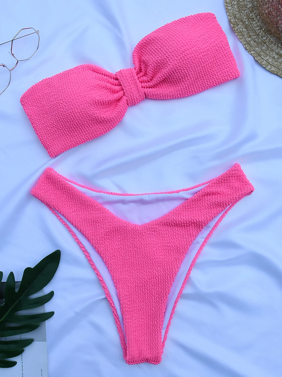 Сексуальные женские купальники 2022, бикини-бандо, женский купальный костюм, купальный костюм, однотонная пляжная одежда