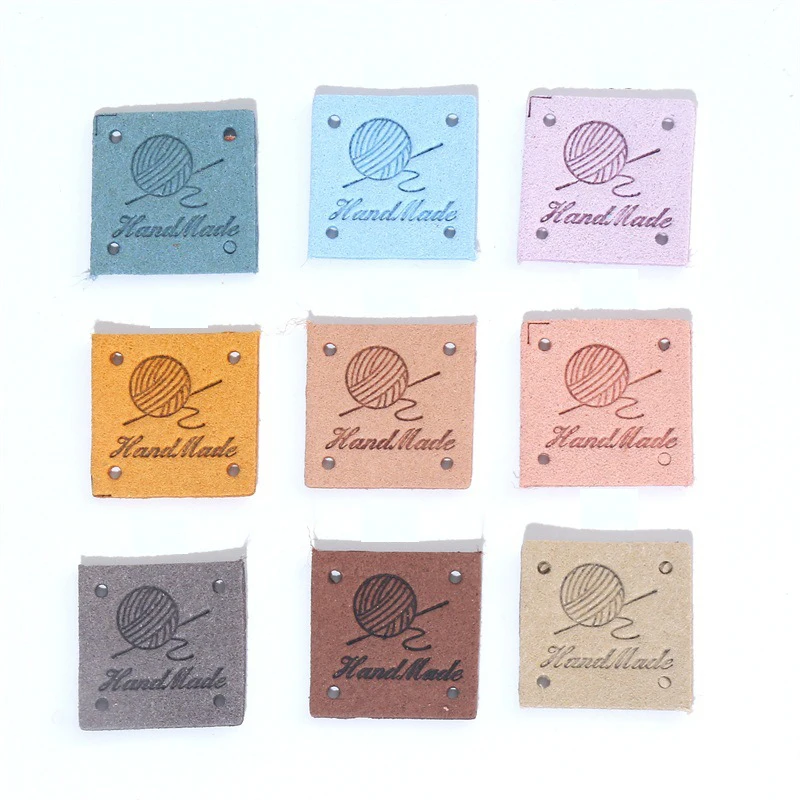 20 шт. разноцветные кожаные бирки для одежды ручной работы, бирки ручной работы для шляп, вязаные аксессуары для одежды