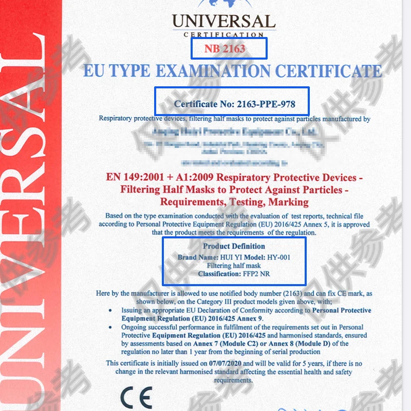 А. Да, тот же Сертифицированный стандарт; Многие клиенты не знают значение KN95 и CE ffp2. Во-первых: KN95-это китайские стандарты сертификации, CE ffp2-европейские стандарты сертификации; Стандарт защиты KN95 равен стандарту защиты CE ffp2. Это только сертифицированное имя в другой стране.