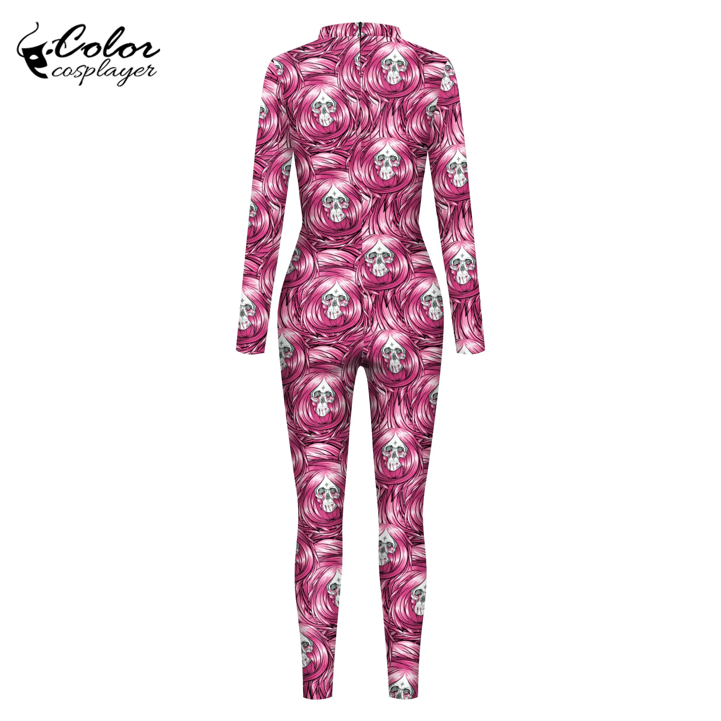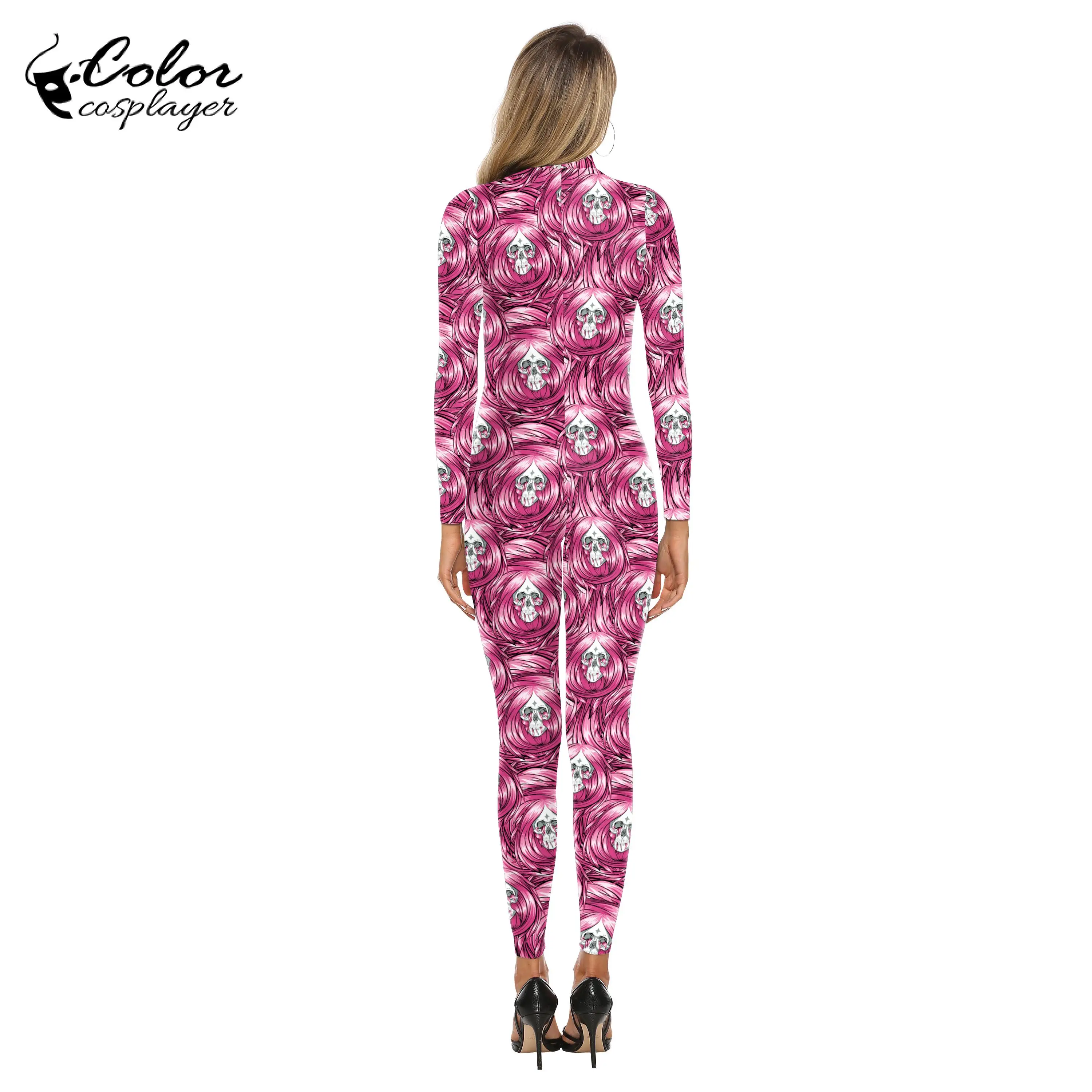 Костюм для косплея на Хэллоуин, боди на молнии с черепом, костюмы для карнавала и вечерние НКИ с цифровым 3d-анимационным принтом, женский костюм