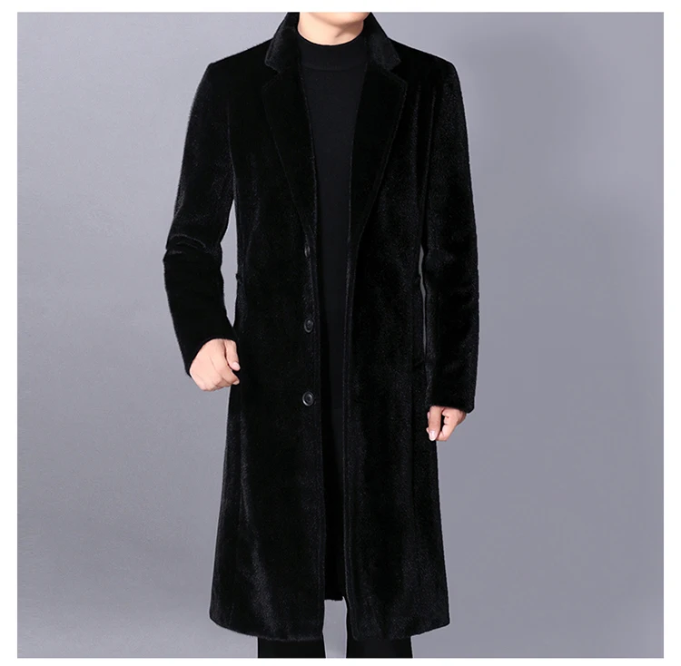 Новинка 2021, Мужская зимняя Смешанная ветровка, длинное пальто из искусственной норкибольшое Мужское пальто, теплая брендовая плюшевая ветровка средней длины