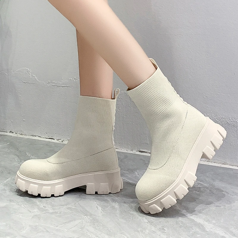 Новинка Осень-зима 2021, парные Туфли-носки, женская повседневная обувь на толстой подошве, большие размеры, сетчатые красные вязаные короткие женские юбки