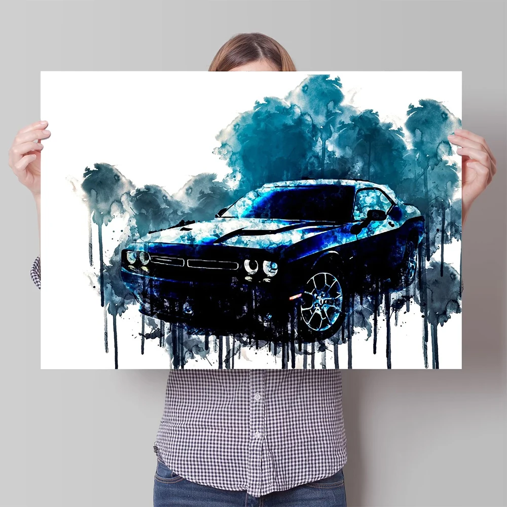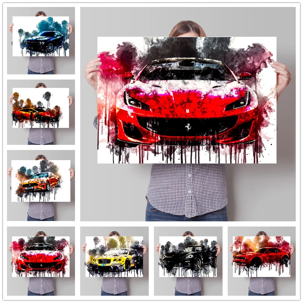 Dodge Challenger GT AWD Ferrari 812 плакат креативная Акварельная концепция автомобиля Картина на холсте граффити настенное Искусство Декор для гостиной