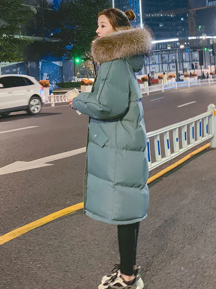 Куртка женская зимняя Длинная с меховым капюшоном, свободная, Y551