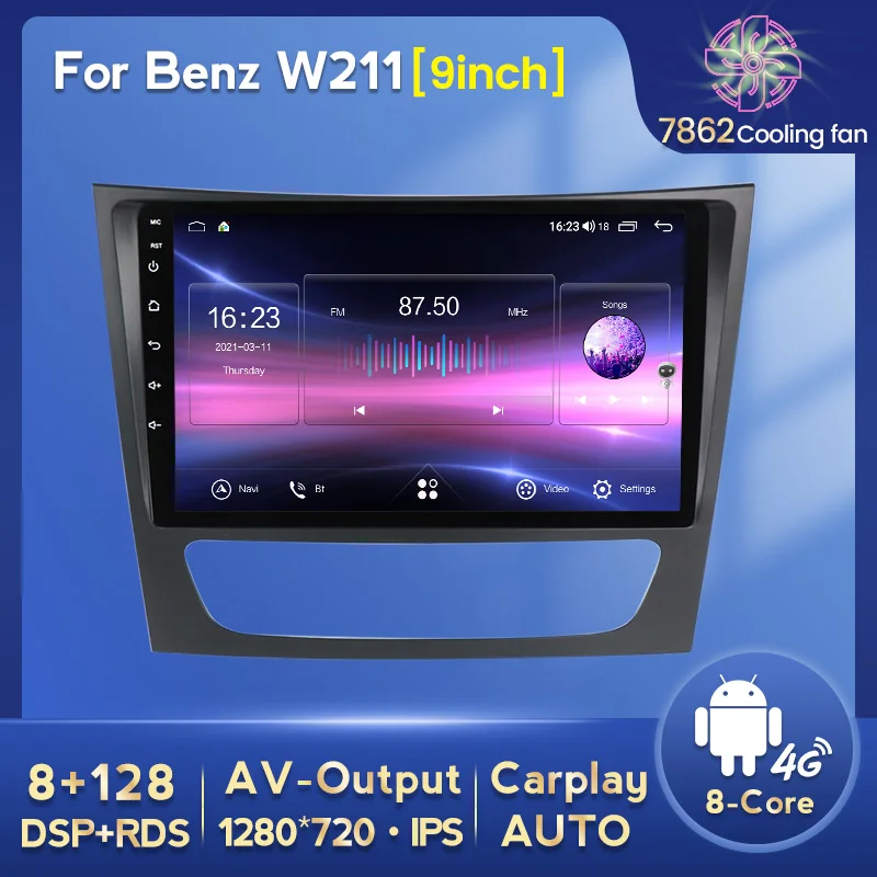 NaviFly 9 ''Android 11 8 + 128G Автомобильная Радио-навигация с экраном для Benz E класс W169 W211 E200 E220 E300 охлаждающий вентилятор RDS DSP BT