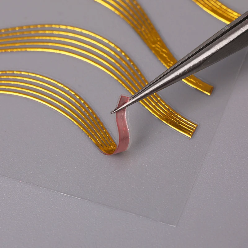 Золотые Бронзовые 3D наклейки для ногтей, фольга, кружева, Геометрическая сетчатая линия, лента, металлическая паста, дизайн сделай сам, подвески, наклейки для ногтей, декор для маникюра