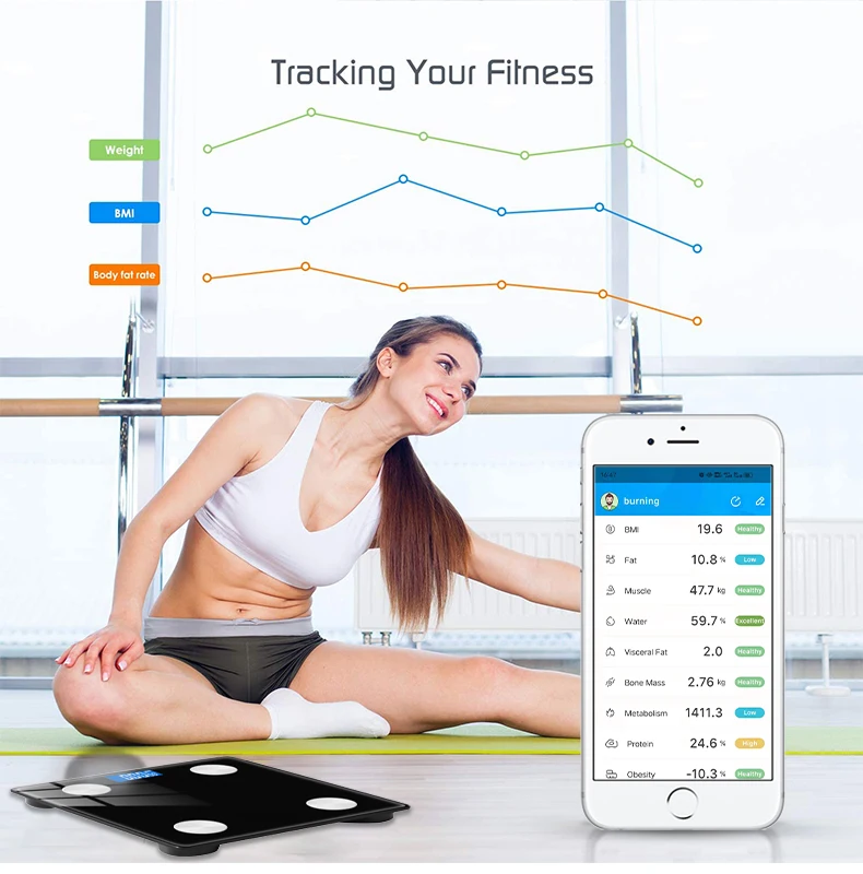 Беспроводные цифровые весы для ванной, анализатор индекса массы тел...