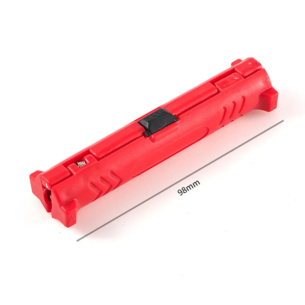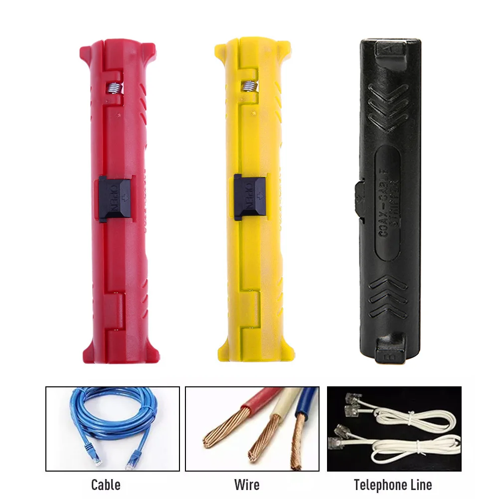 Характеристика:1. Изготовлен из АБС-пластика, с тонким мастерством, встроенная пружина-светильник, экономичный и долговечный.2. Высококачественное лезвие, острое лезвие, простота в использовании и длительный срок службы высококачественного износостойкого лезвия.3. Малый размер, легко носить с собой, прост в эксплуатации и может быть завершен вращением.Применение: подходит для коаксиальных кабелей и проводов.Спецификация:Материал:Основной корпус: АБС-пластик лезвие: SK-5Длина: около 98 мм/0,31 дюймаЦвет: красный/черный/желтыйПримечание:В связи с различиями мониторов и эффектами освещения реальный цвет товара может немного отличаться от цвета на фотографиях. Спасибо!Возможны отклонения в 1-2 см вследствие измерений вручную.