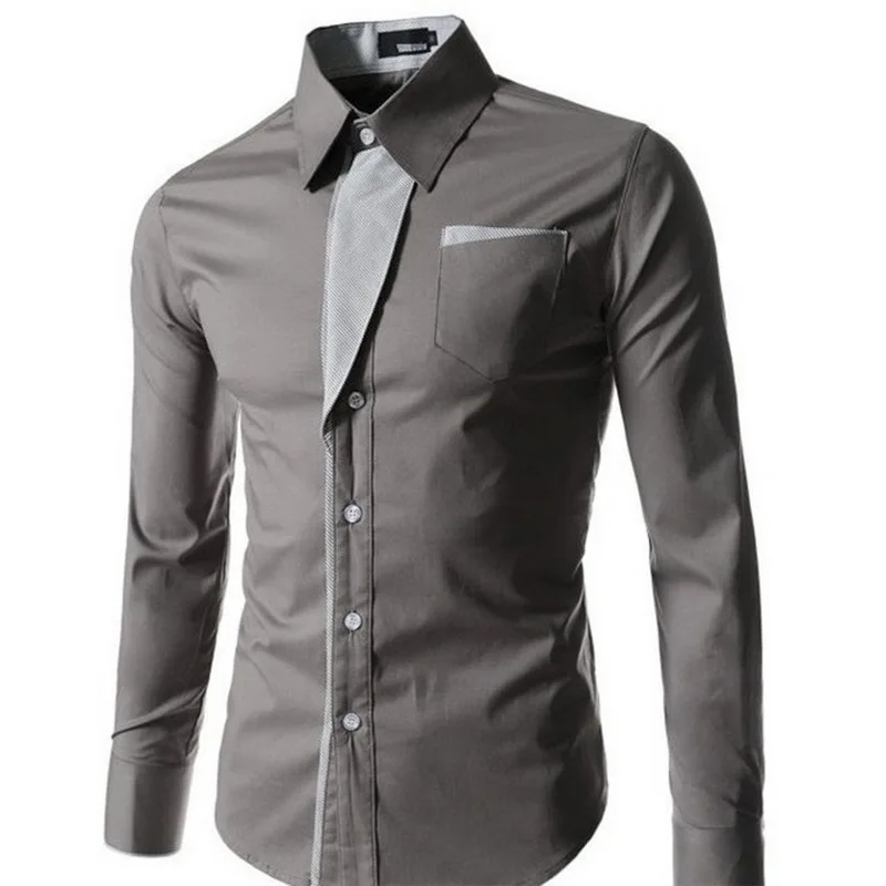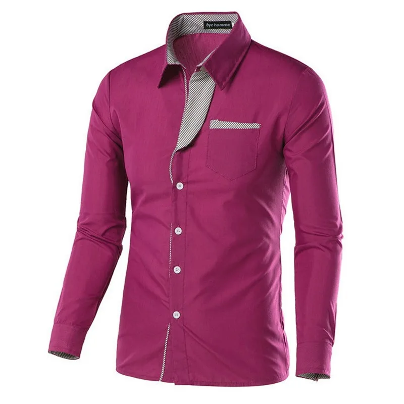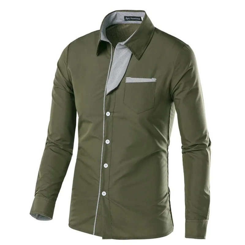 Мужская приталенная рубашка с длинным рукавом, в стиле кэжуал