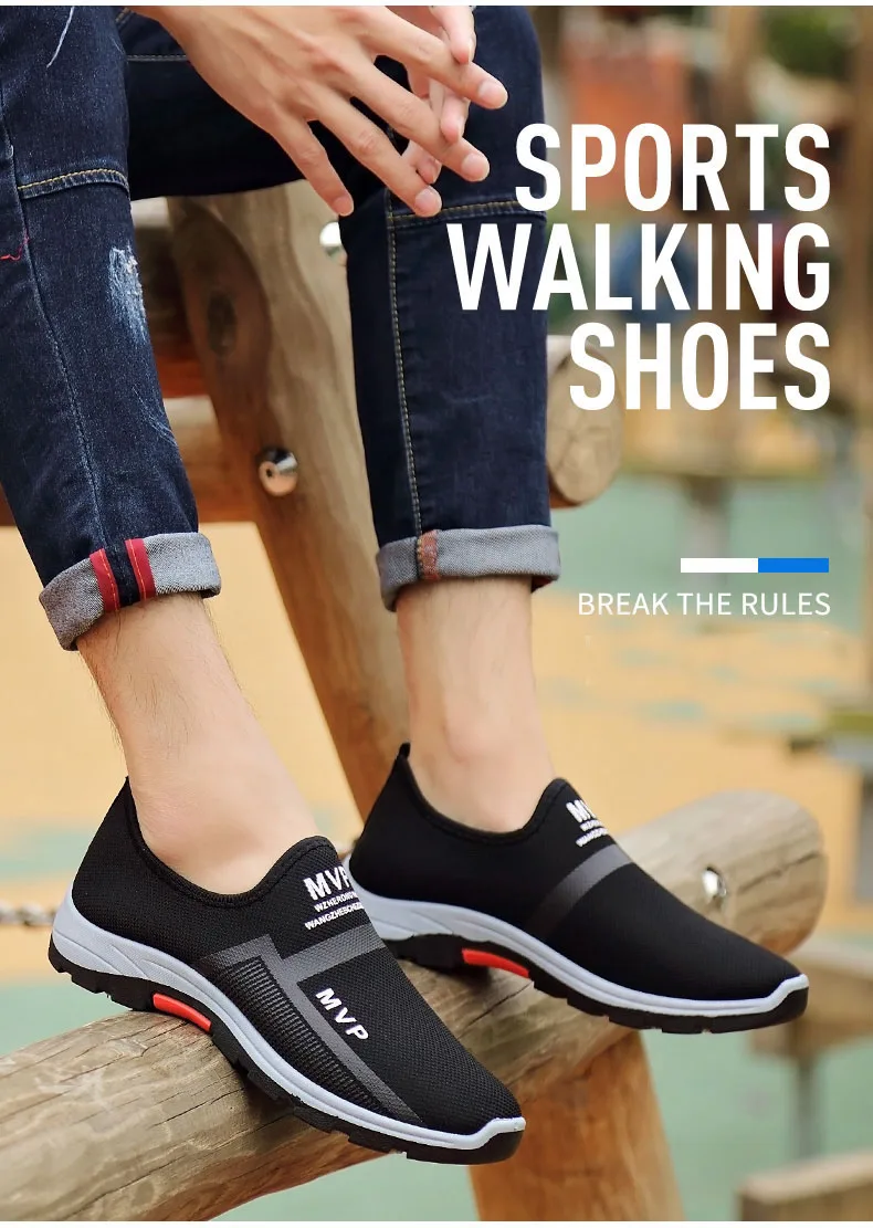 Легкие мужские кроссовки без шнуровки, сетчатые дышащие, легкие, повседневная прогулочная обувь, лоферы, лето-осень