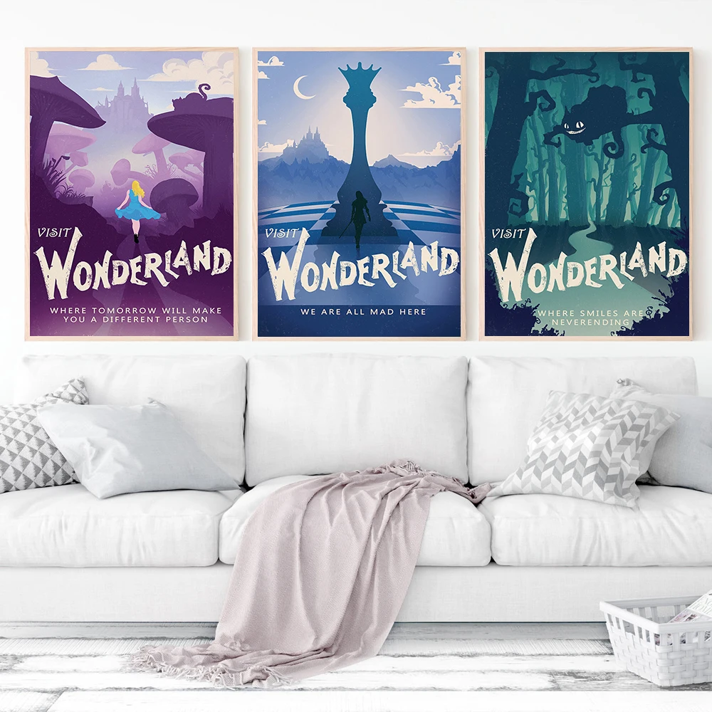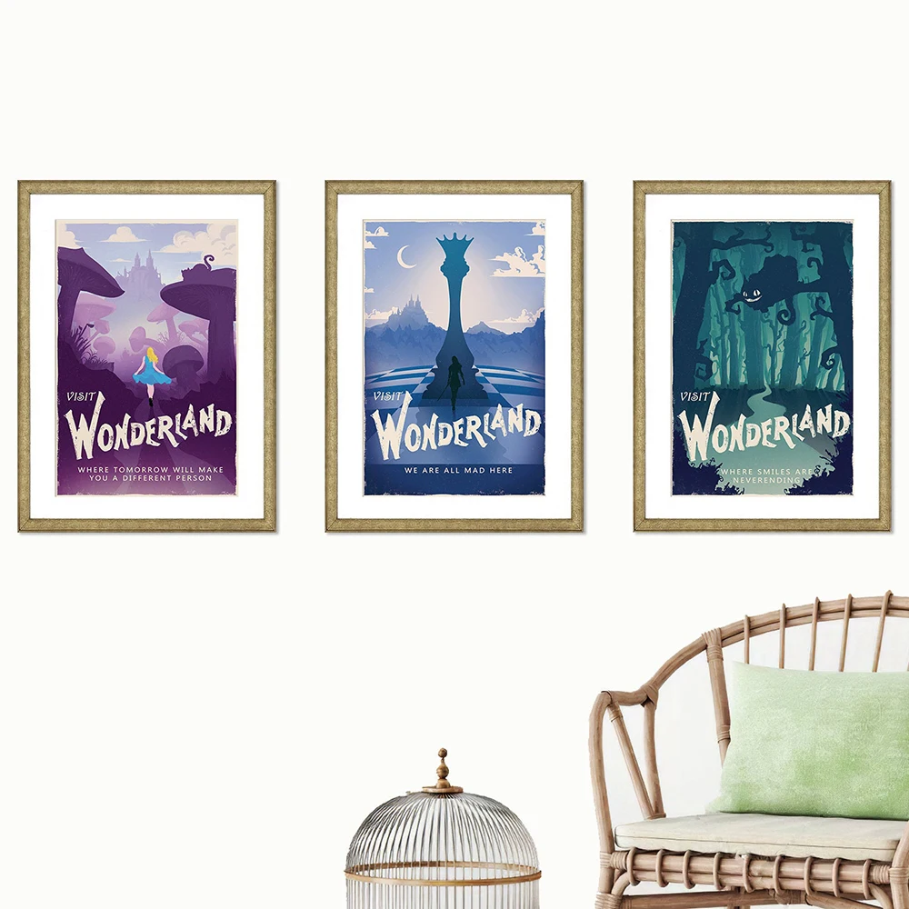 Винтажные постеры из скандинавского фильма Алиса в стране чудес, Минималистичная дорожная ретро-Картина на холсте, современные картины, гостиная, домашний декор